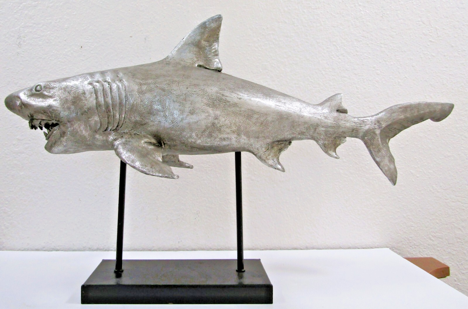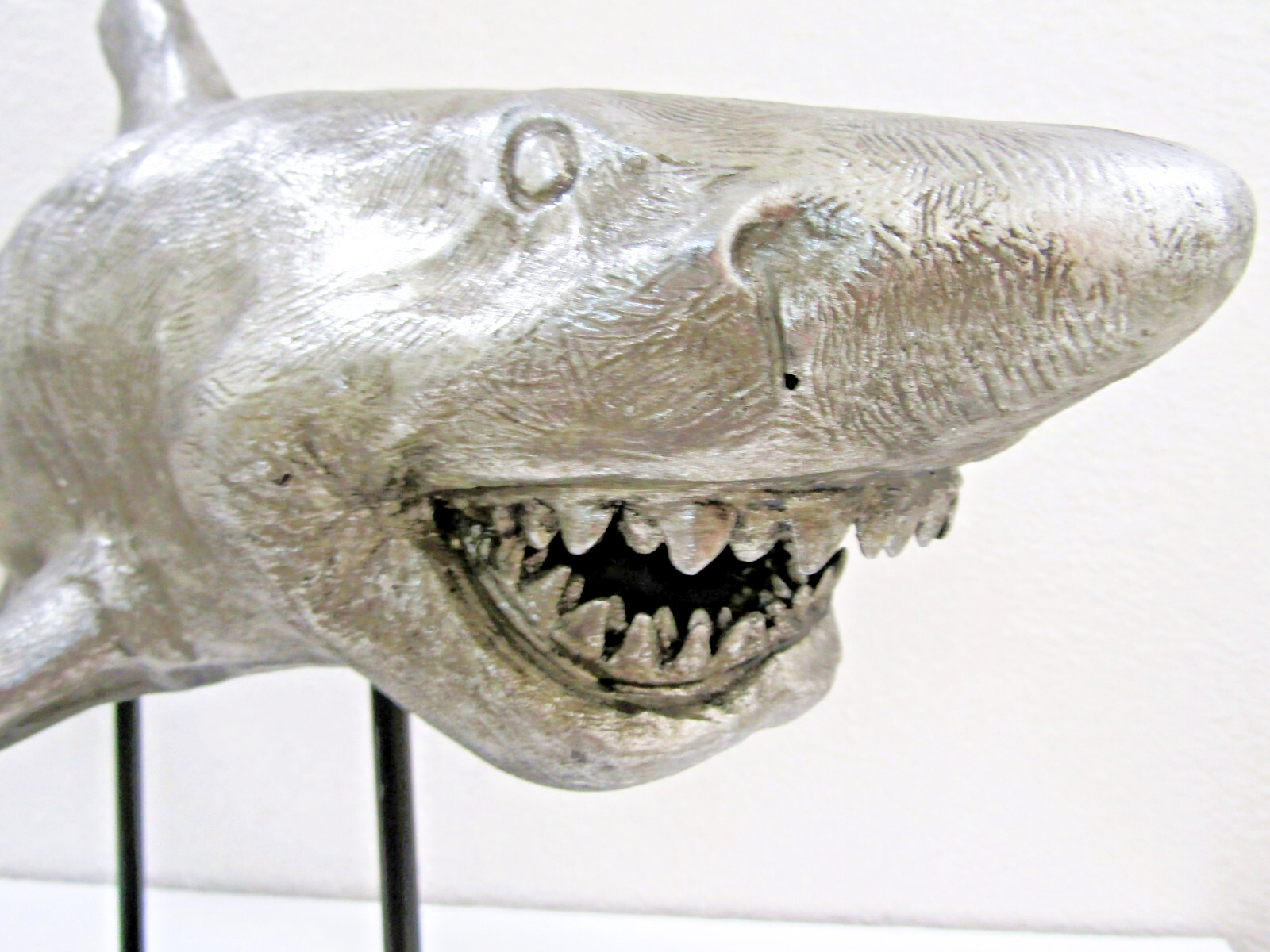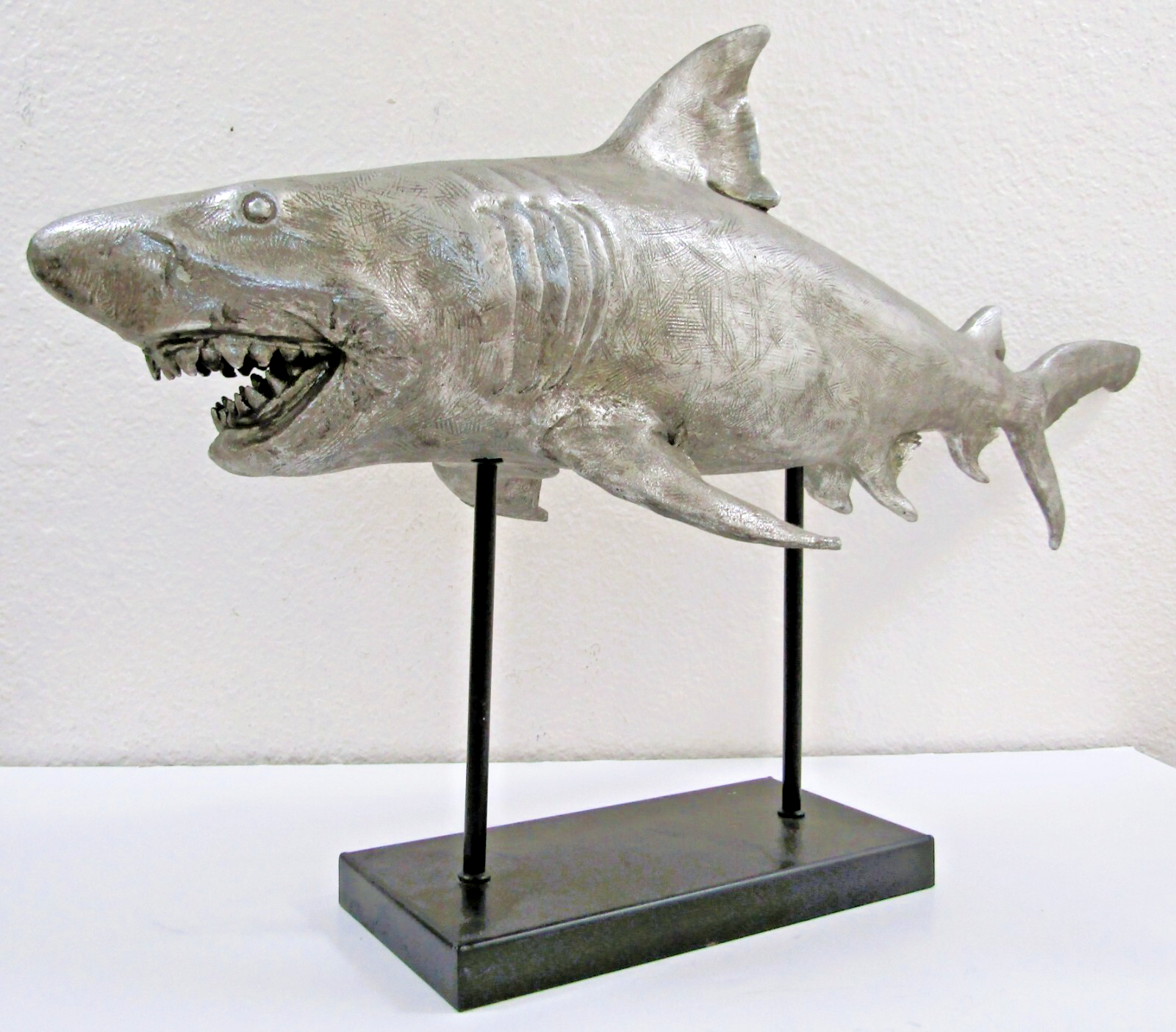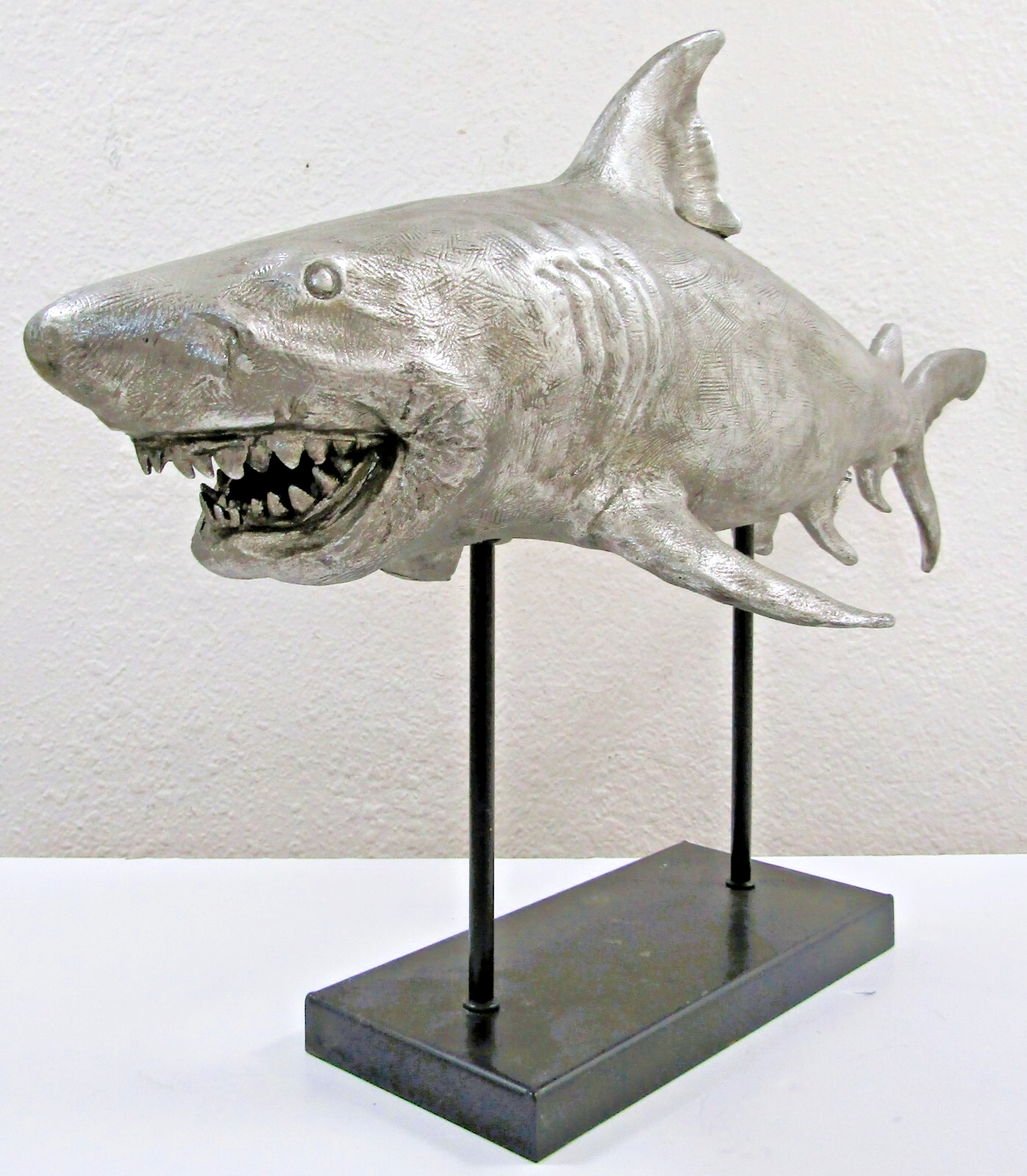 Contemporary Great White Shark Megalodon Resin Sculpture on Iron Base