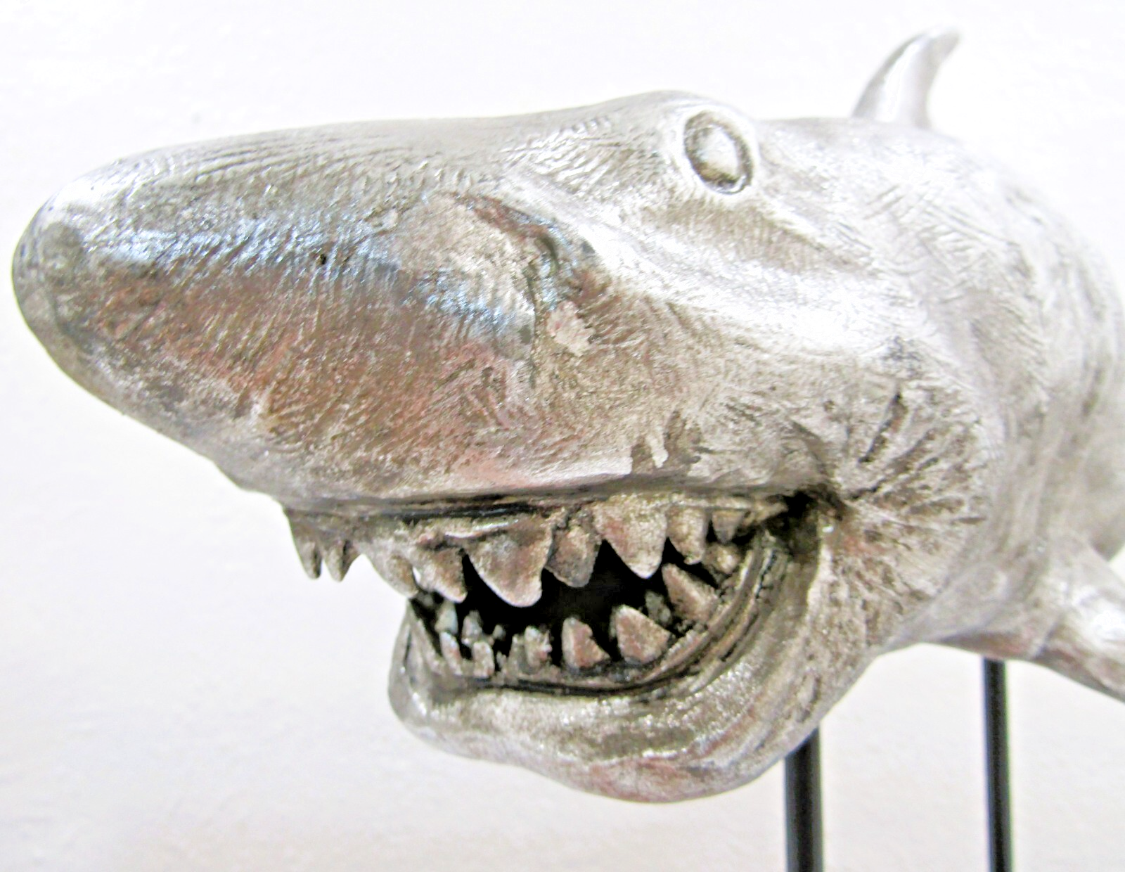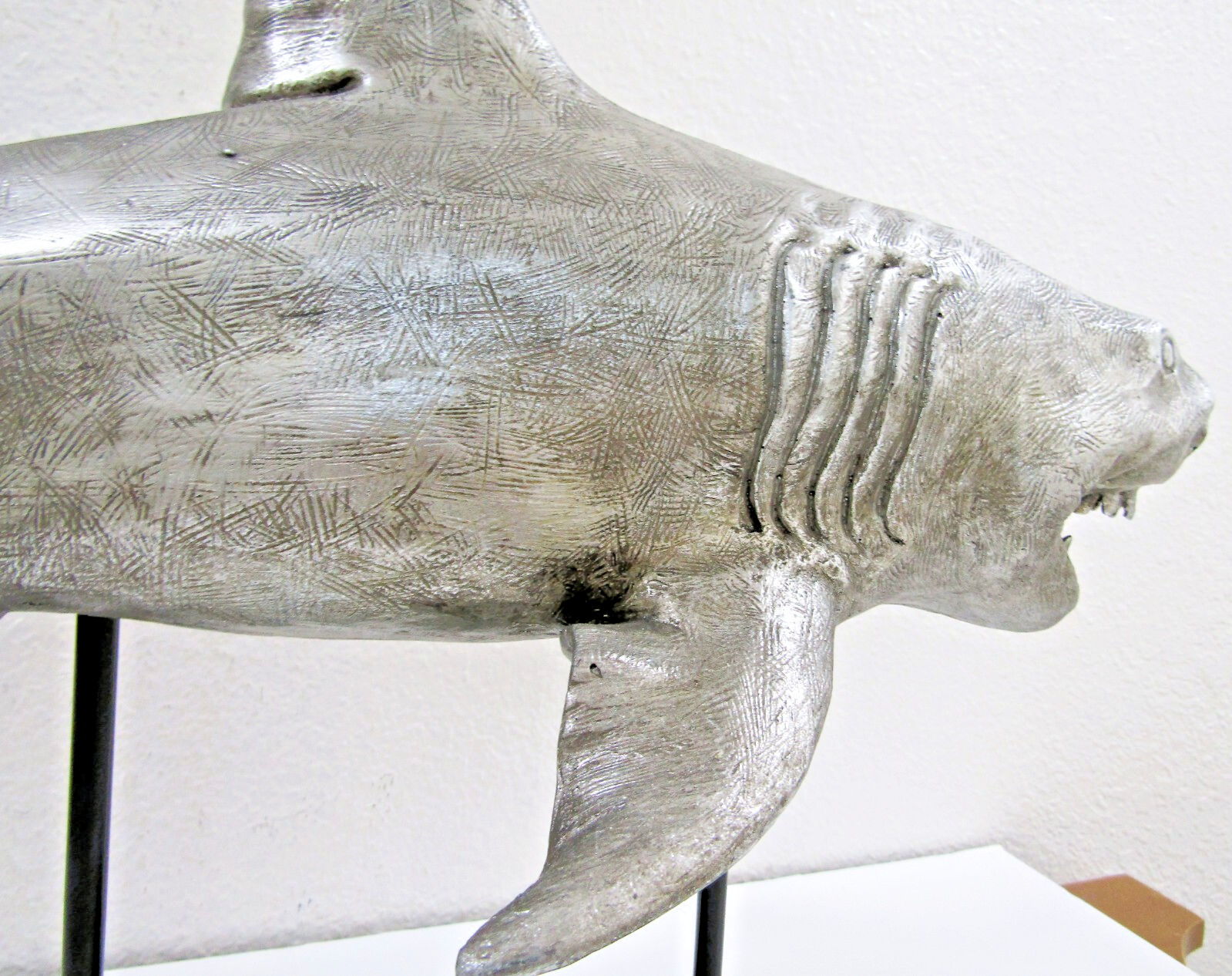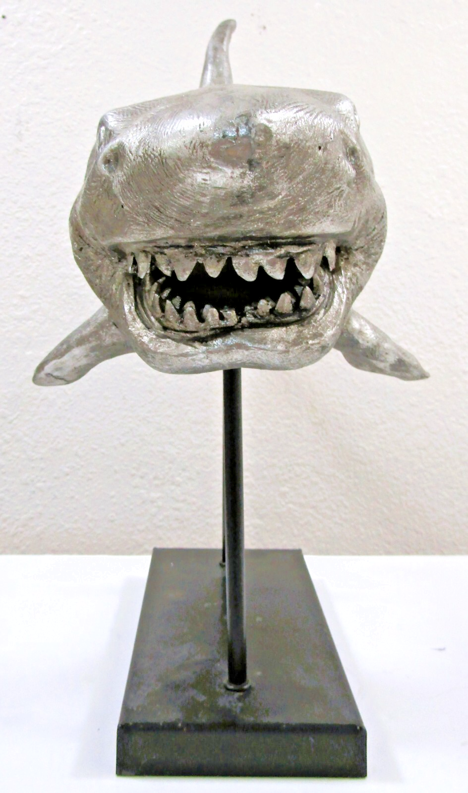 Contemporary Great White Shark Megalodon Resin Sculpture on Iron Base