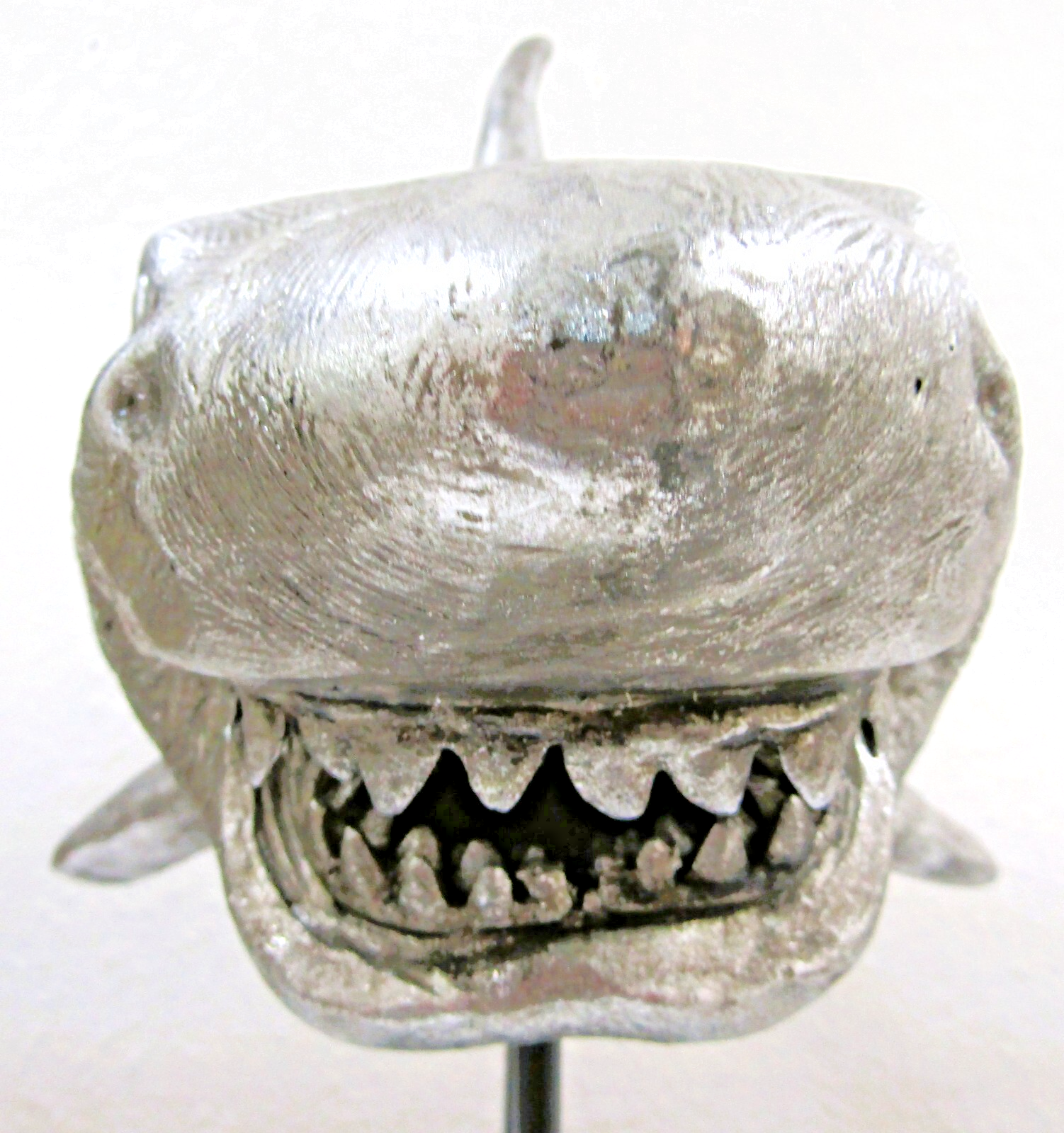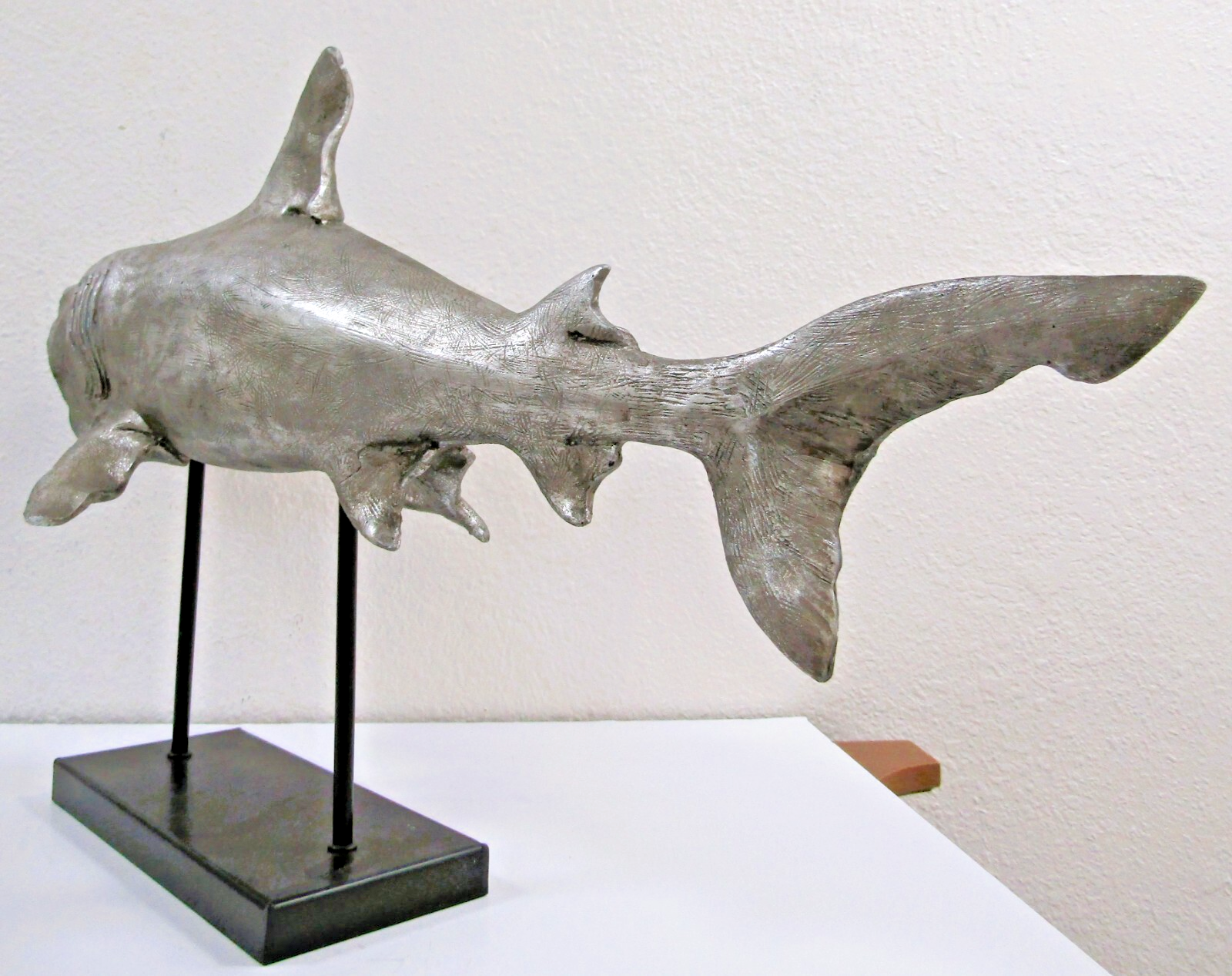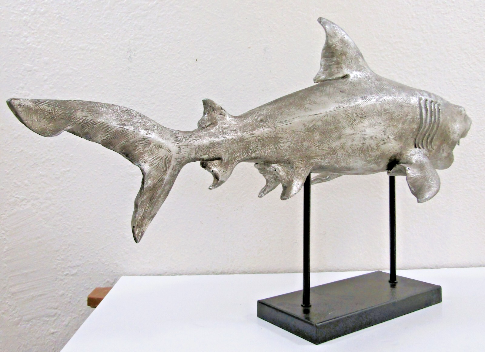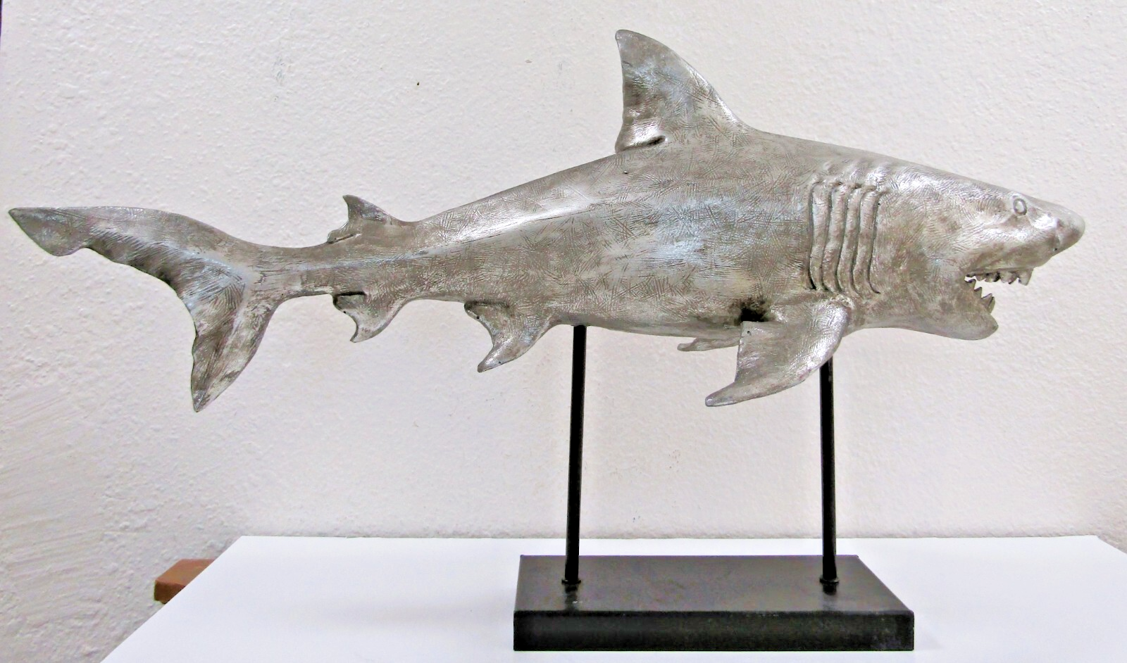 Contemporary Great White Shark Megalodon Resin Sculpture on Iron Base