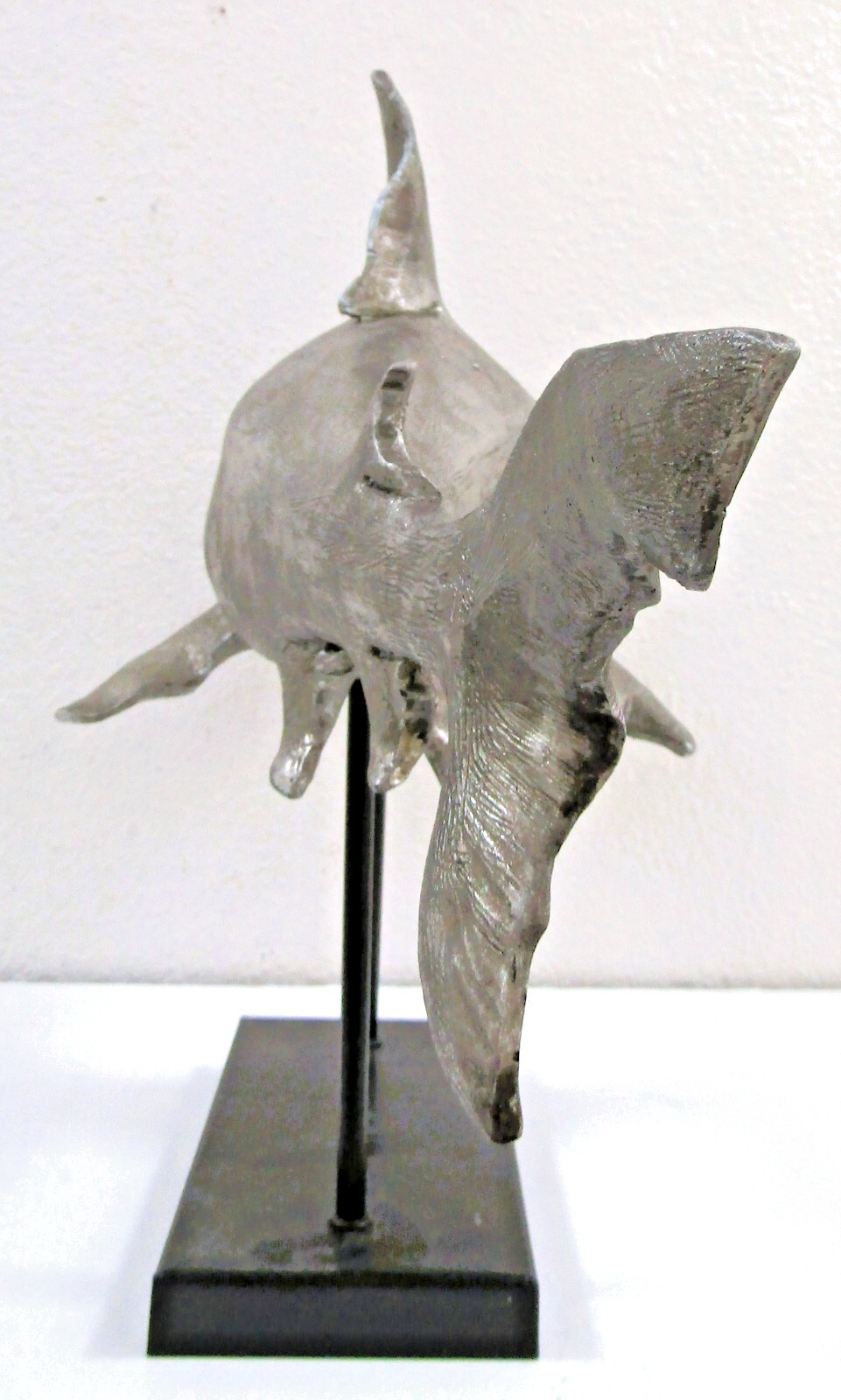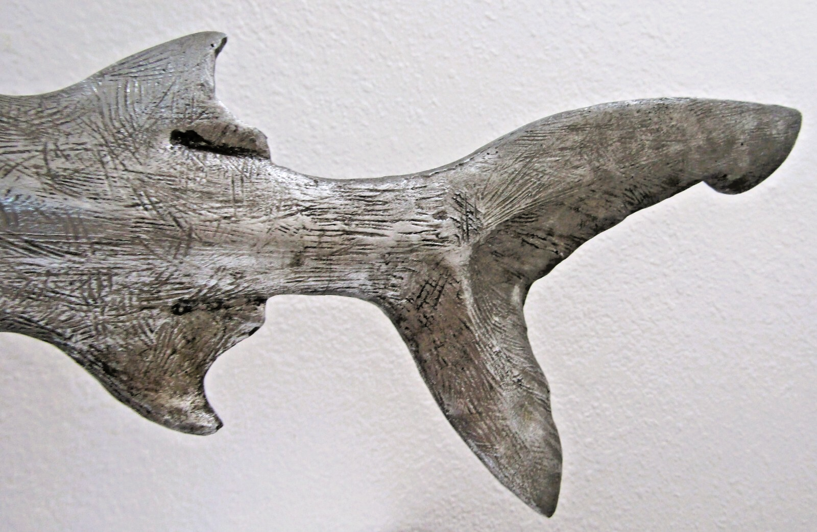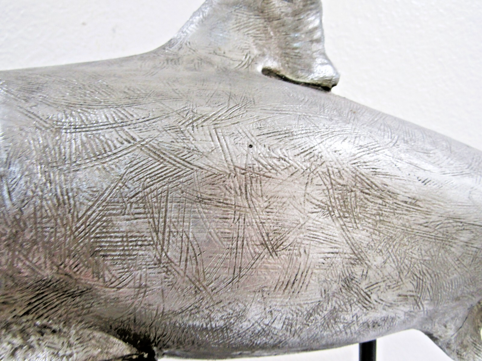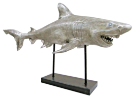 The Contemporary Great White Shark Megalodon Resin Sculpture on Iron Base is a large, realism-style statue crafted from magnesia, polyresin, and iron. This stunning sculpture features a detailed representation of a shark, making it a striking focal point for any art collection or outdoor space. Its impressive size and high-quality materials make it a visually striking and durable piece that showcases the beauty and power of marine life.