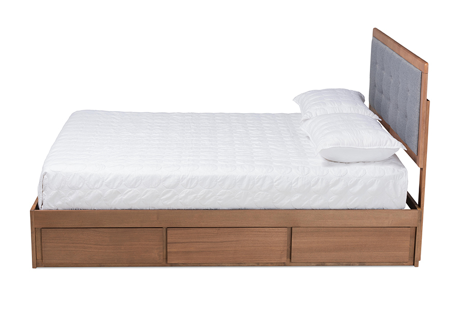 Spuma Dark Gray Fabric Ash Walnut Brown King Size 3-Drawer Platform Storage Bed