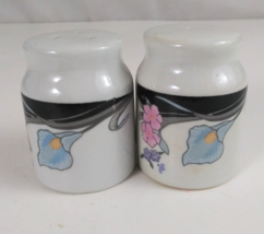 Vintage Blue & Pink Calla Lilly Floral Round Ceramic Salt & Pepper Shakers