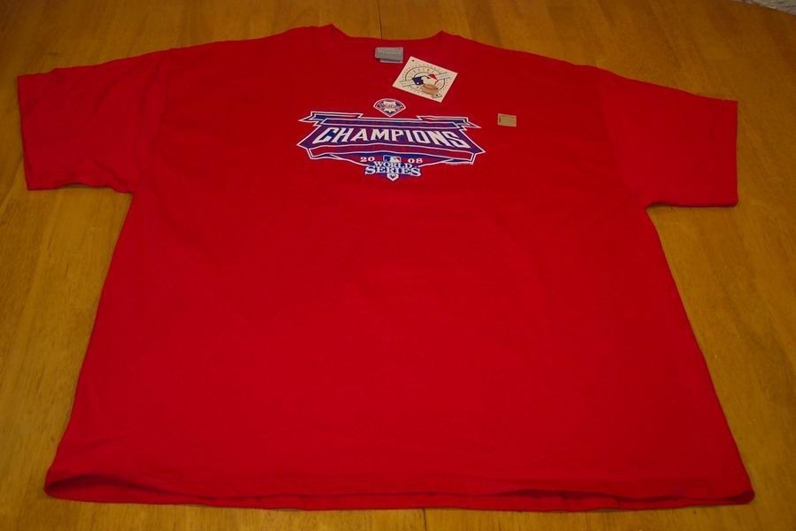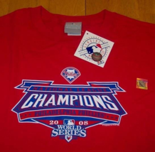 This is a PHILADELPHIA PHILLIES 2008 WORLD SERIES NL CHAMPIONS T-shirt. It is a size 2XL and it is NEW with the tag. It is 26 inches from armpit to armpit and 31 1/2 inches in length. Official Genuine MLB Merchandise Shirt. Combine auctions to save on shipping. AG