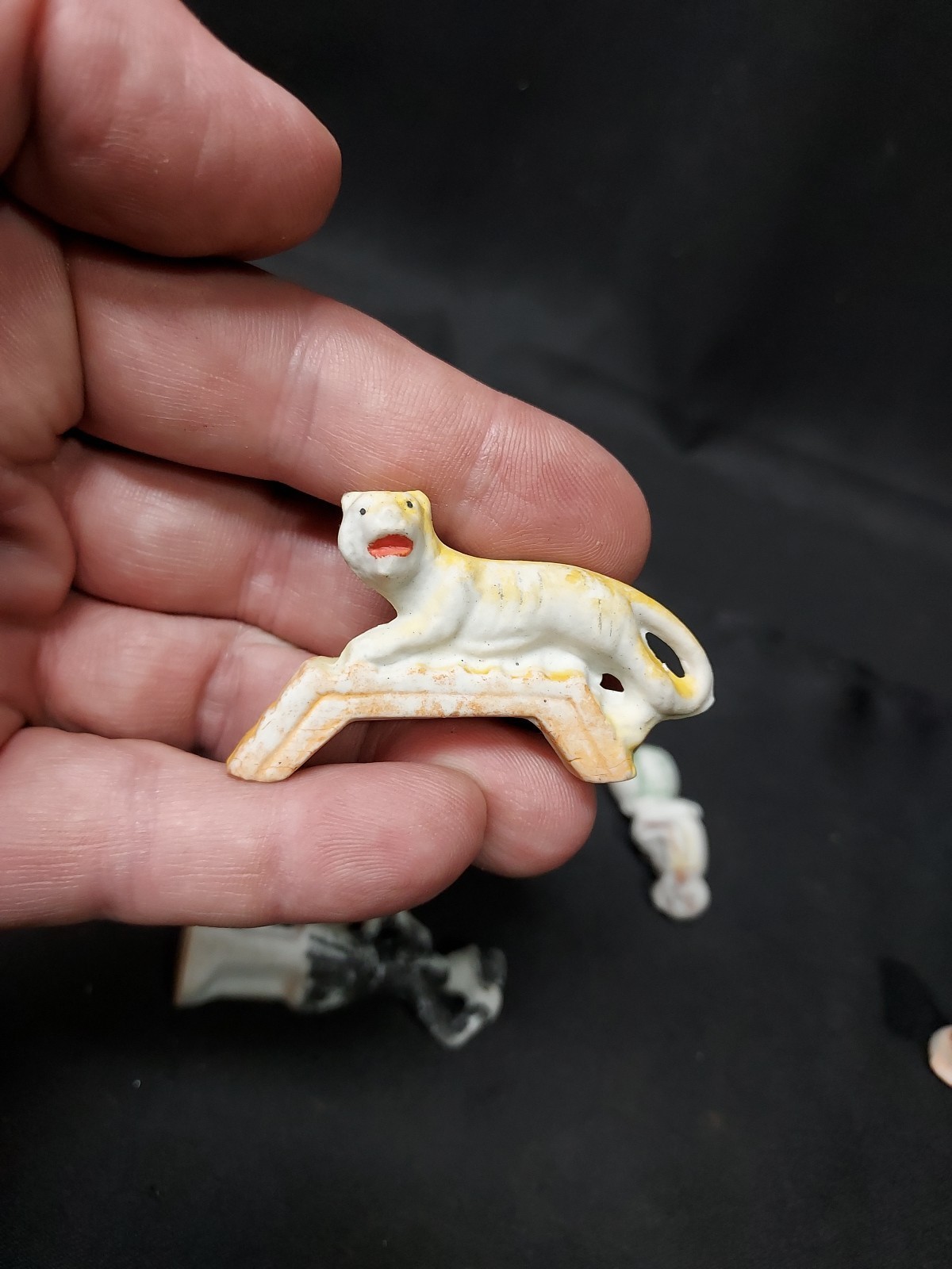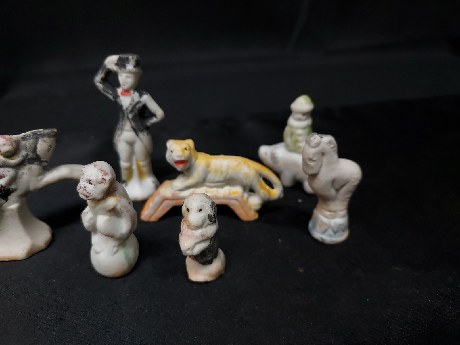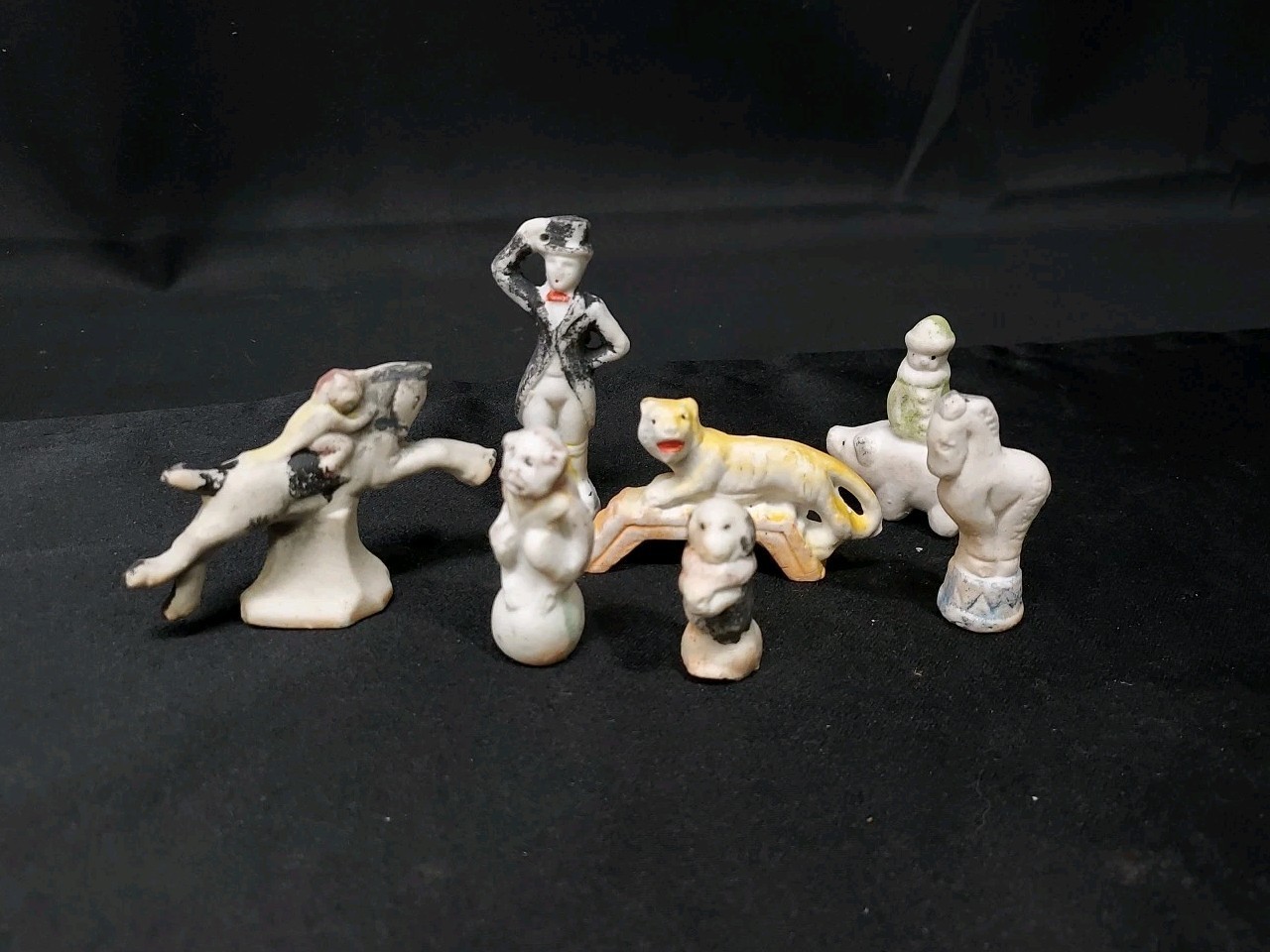 1930s 1940s Circus Birthday Cake Toppers Bisque Porcelain Japan 7 Pieces. Condition is Used. Shipped with USPS Ground Advantage.