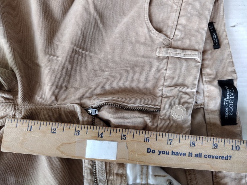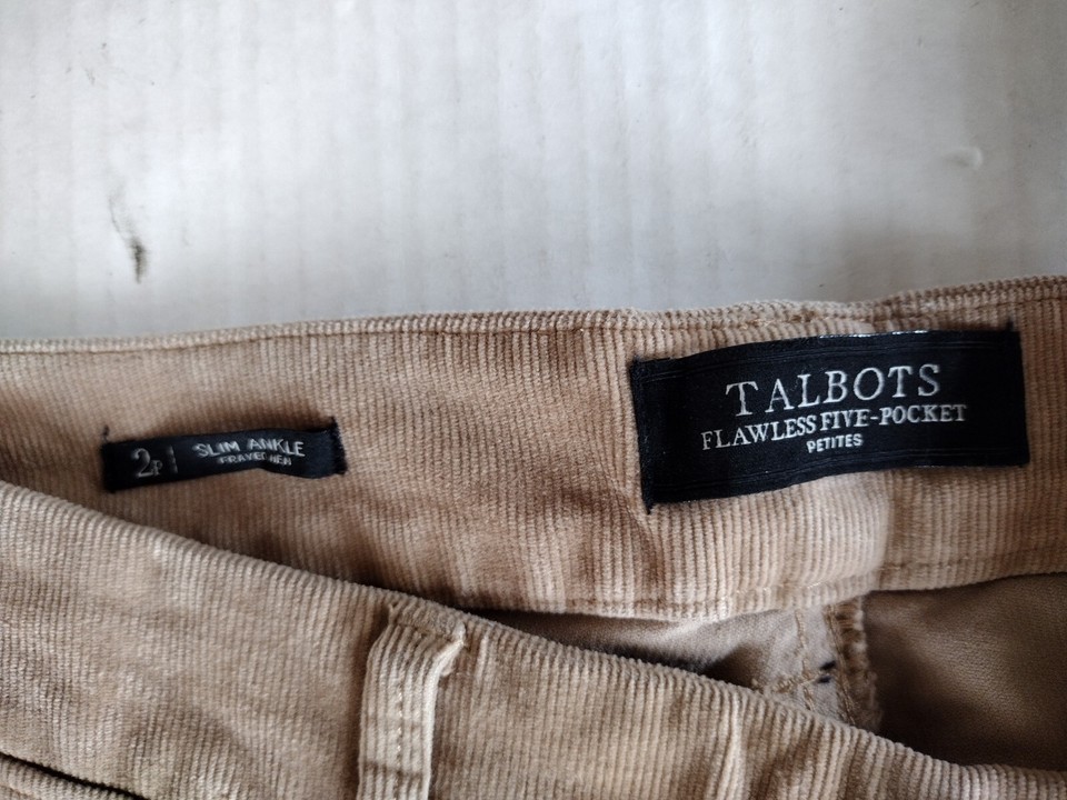 Talbots Flawless 5 Pocket Beige Slim Ankle Frayed Hem Corduroy Jean Size 2P EUC