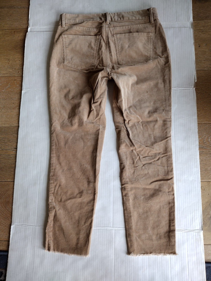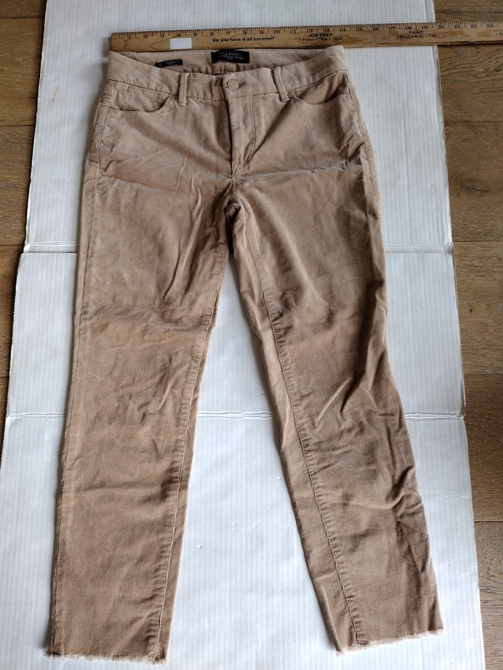 Talbots Flawless Five Pocket Stretch Beige Slim Ankle Corduroy Jeans Frayed Hem Size 2P 31" Waist
