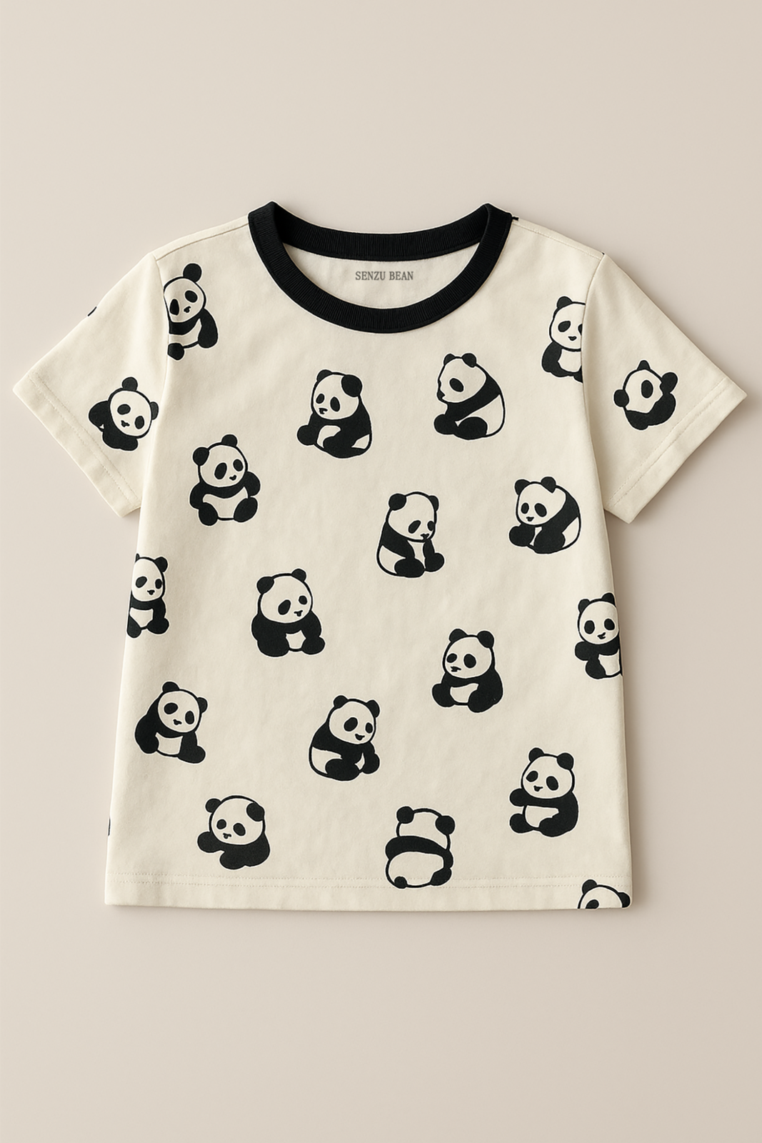 SENZU BEAN Kids Panda Print Cotton T-Shirt, One Size for 4-5 Years