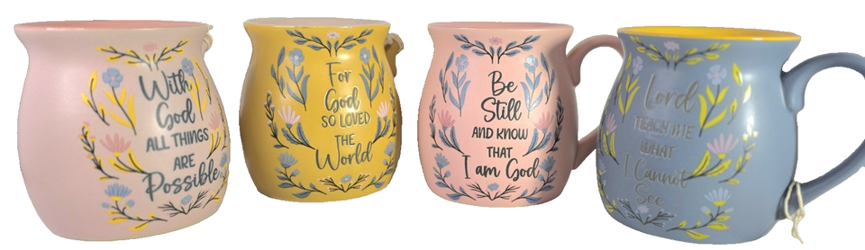 Jumbo Bible Verse Mugs Set Of 4 Faith Inspirational 16 oz NEW