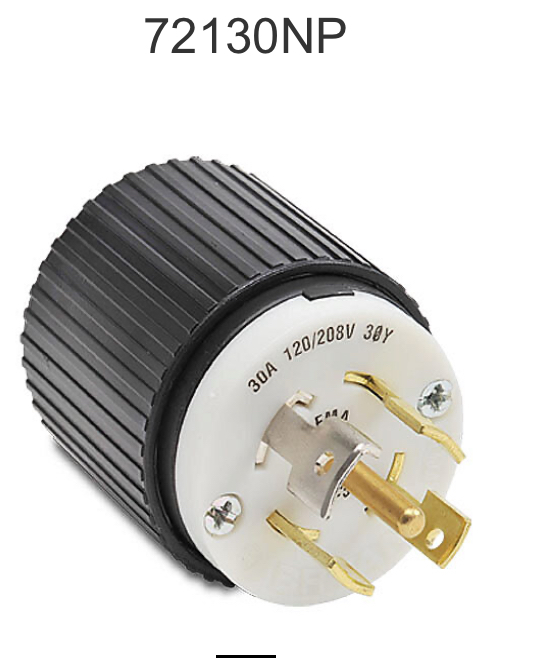 72130NP Bryant industrial HD Twist Lock blade plug, 30A & Hubbell Receptacle
