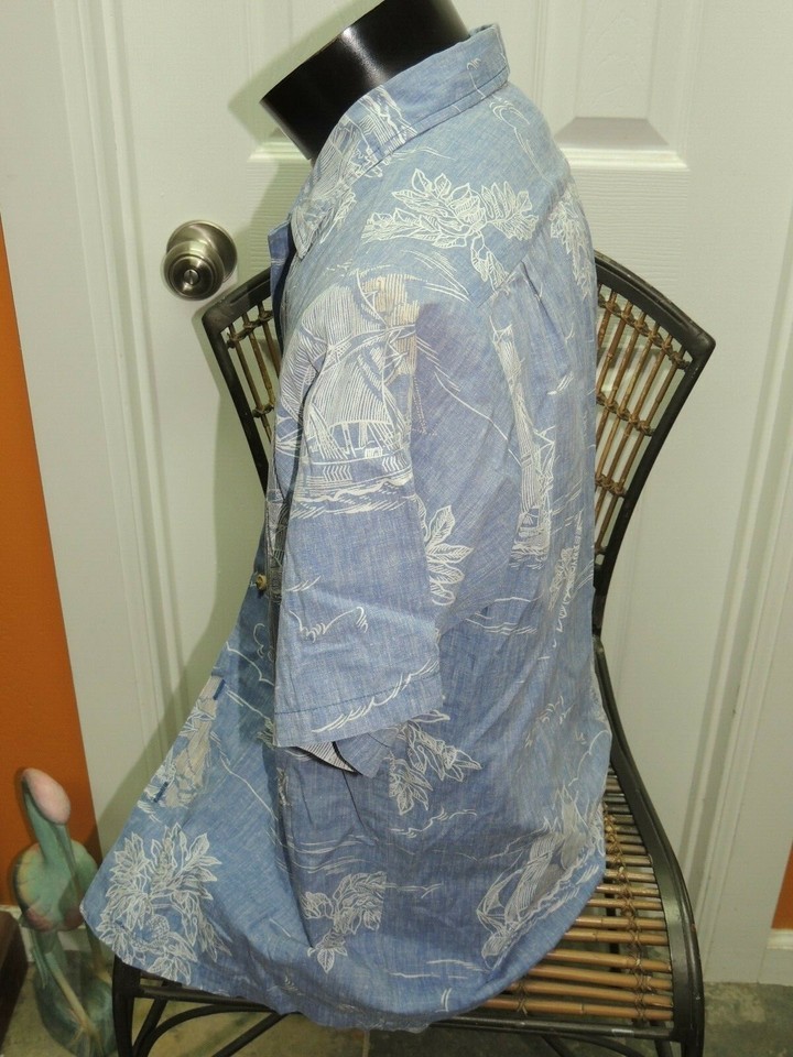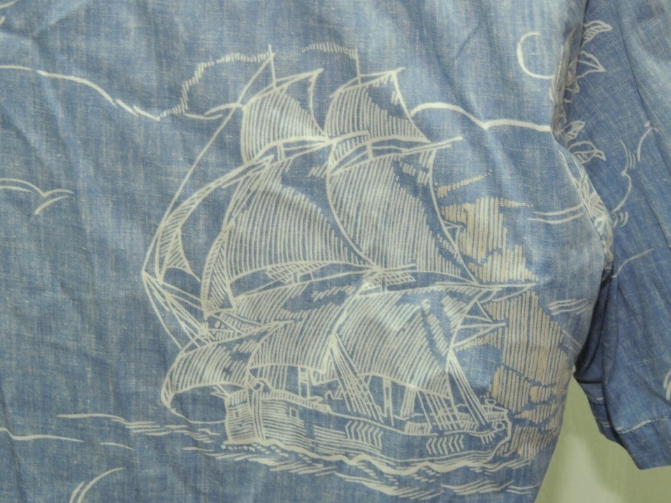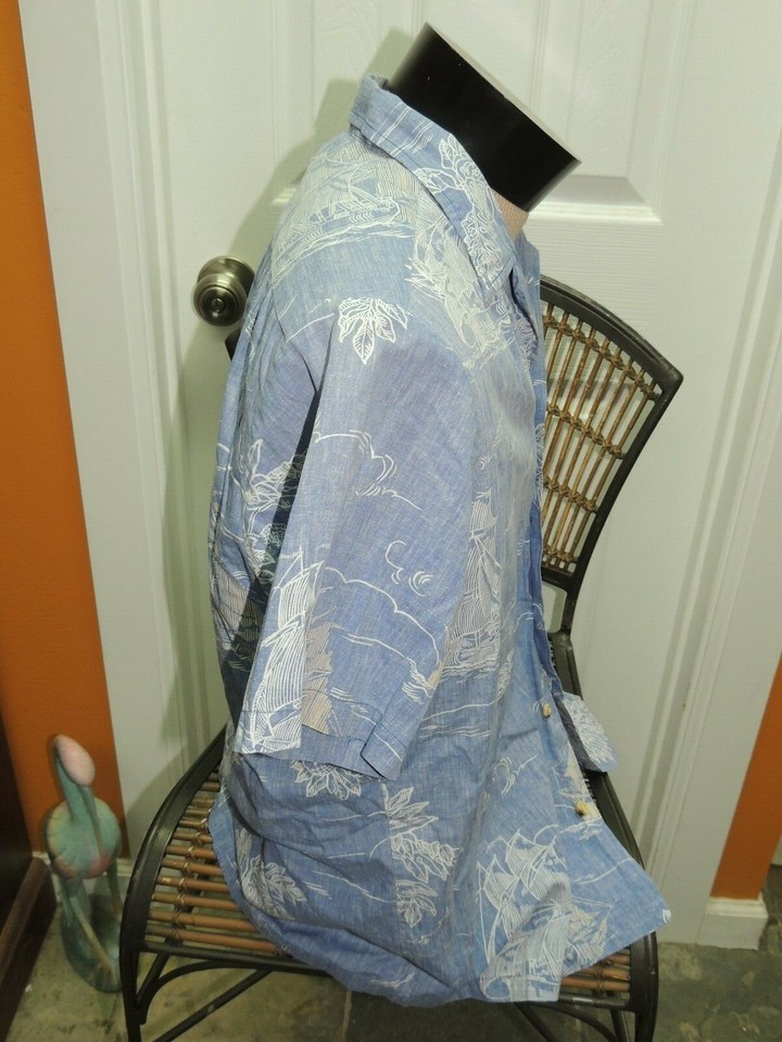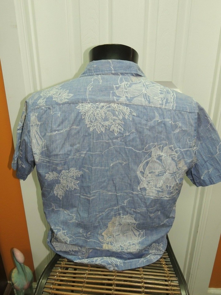 Mens Chapman's Short Sleeve Shirt 100% Cotton Hawaiian nautical ships Vintage