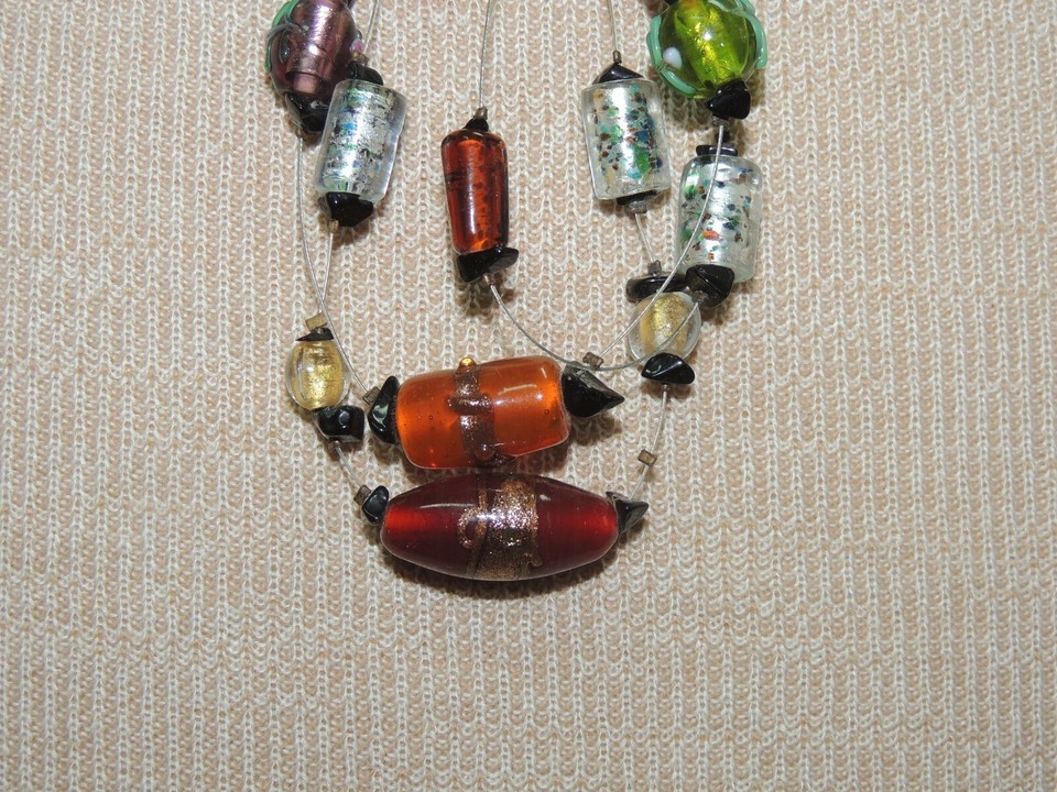 Glass lampwork bead & black stone necklace 13-15"+ strung on fine wire unmarked