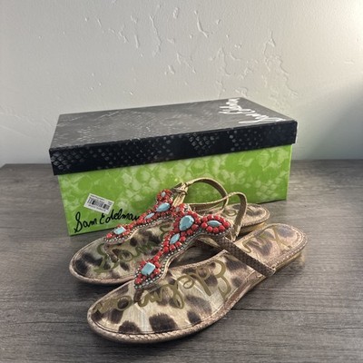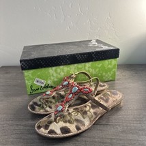 Sam Edelman Sandals Womens Leather Leopard Strap Flats Shoes sz 7M