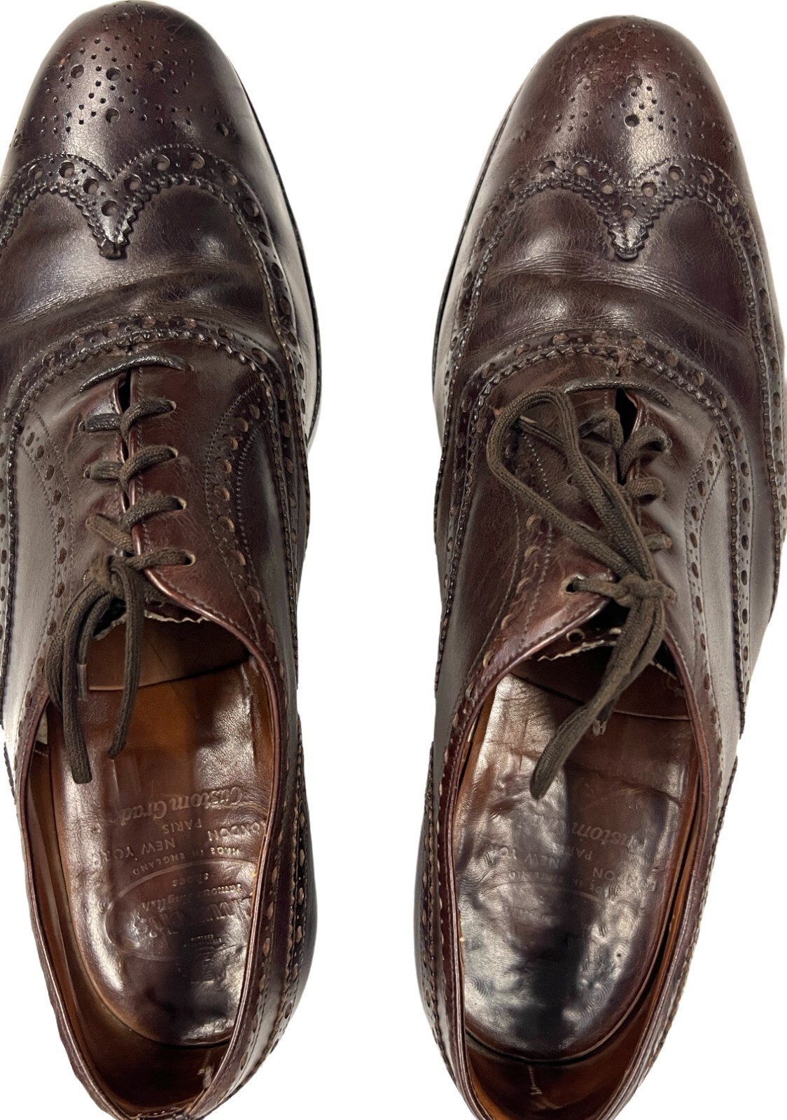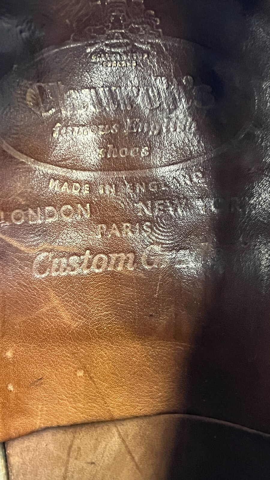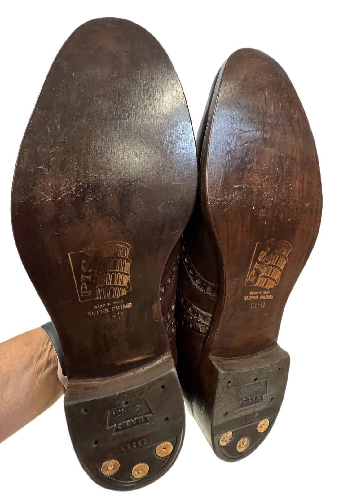 Beautiful Mens "Church's" custom made Brogue shoes appear to be newly soled,since the leather sole is stamped made in italy-and the tops are in great new-ish condition- Im not sure if they were restored or what but they look like new.The only way to tell they have been worn is the insole is worn enough to make it hard to read.