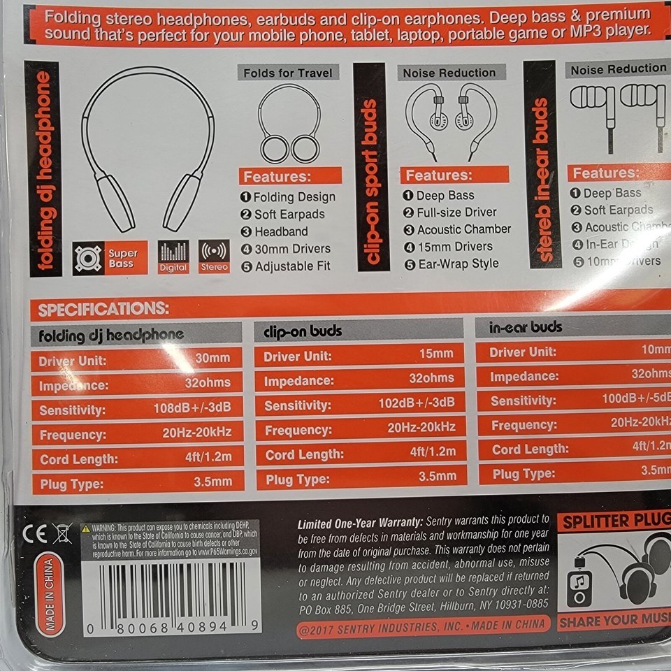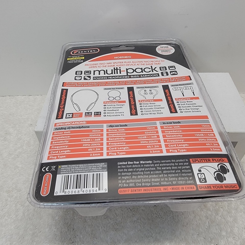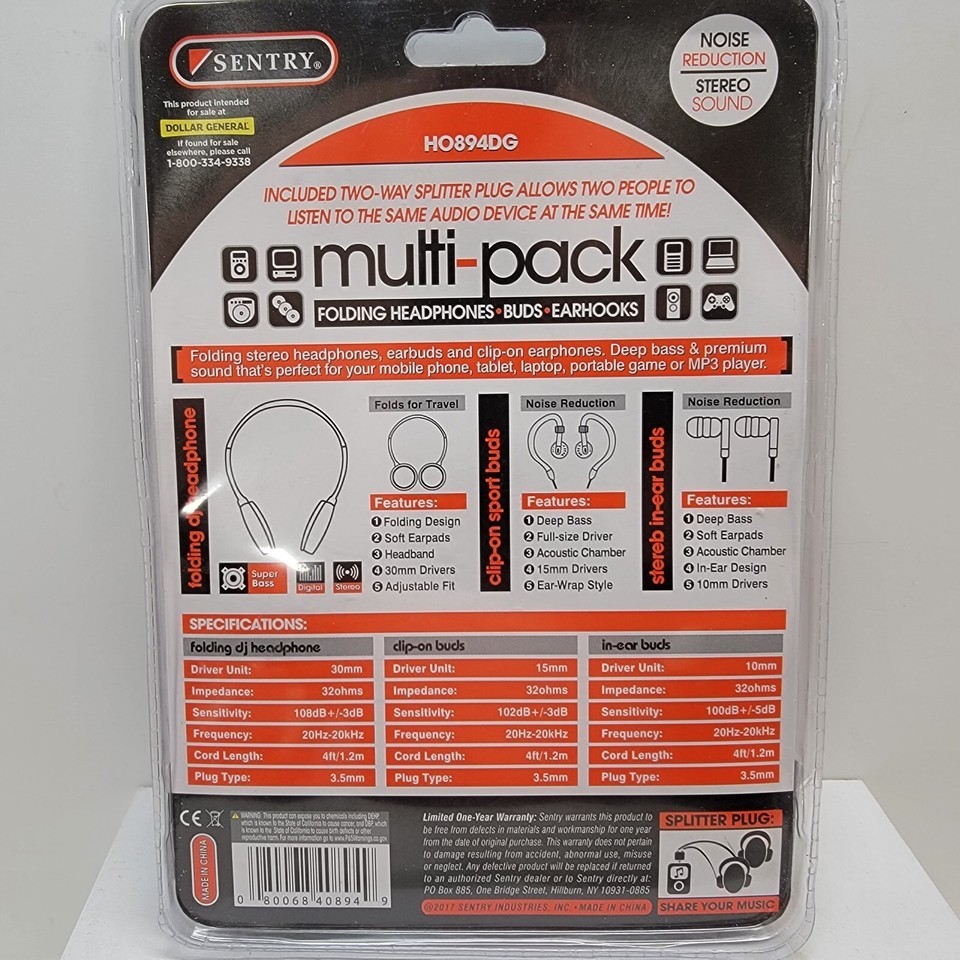 Sentry Portable Noise Reduction Headphones Earhooks Earbuds Black 3-Pack SEALED