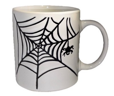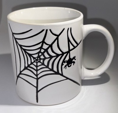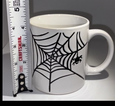 Halloween Coffee Cup Mug Oversized 12oz “Spiderweb” Ceramic White/Blk-NEW-SHIP24