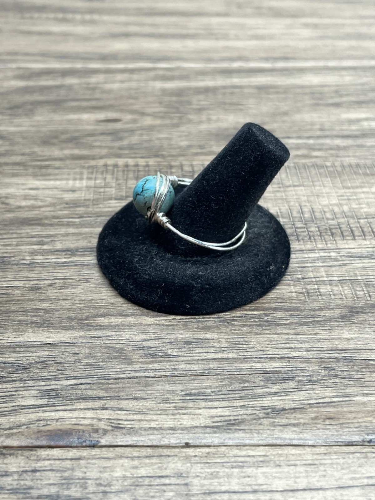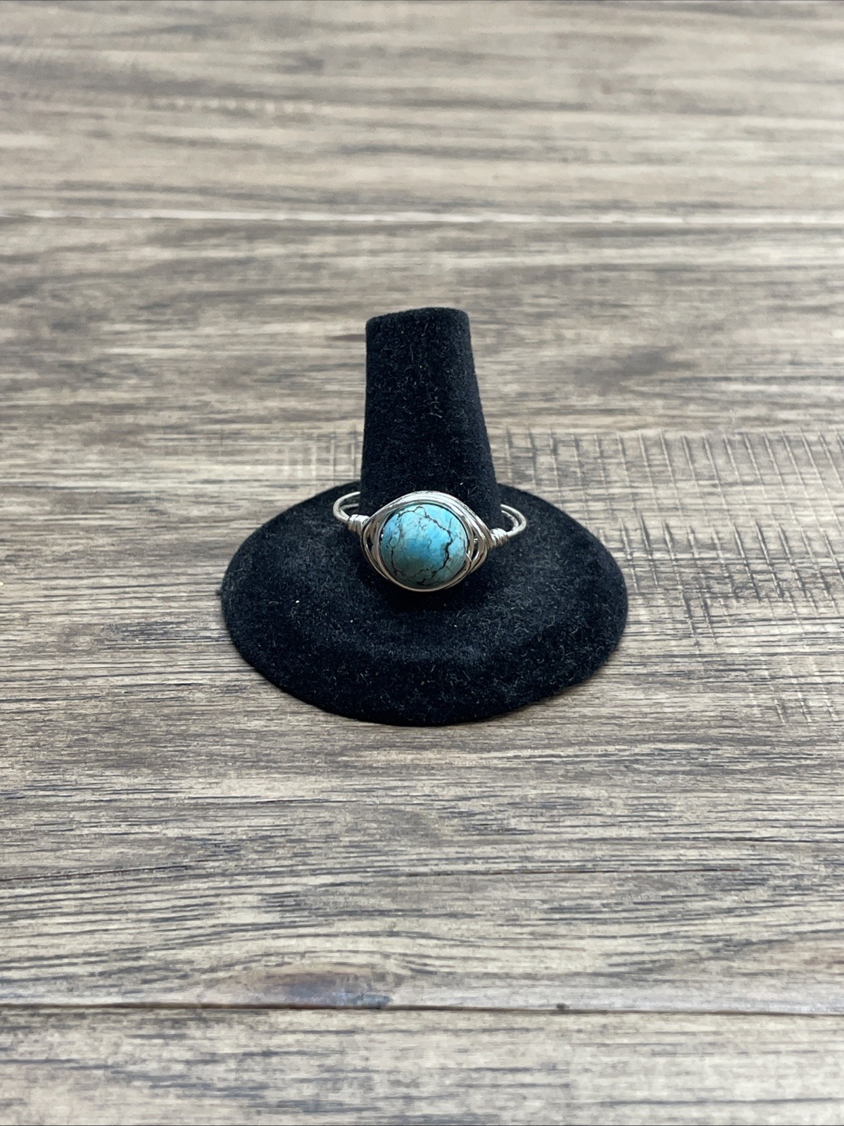 Silver Tone Blue Stone Ring Woman's Size 9 Western Boho Hippie KG JD