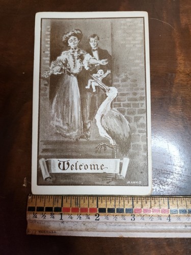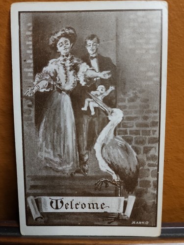 Stork Delivering a New Baby - WELCOME - 1920s Postcard H.A.&N. Co