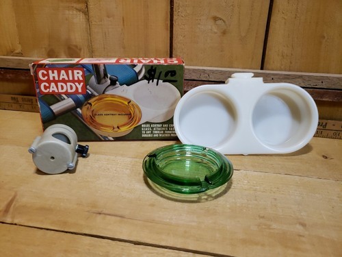 Vintage RARE Ashtray Chair Caddy Green Glass Ashtray Patio Chair Chaise Lounge