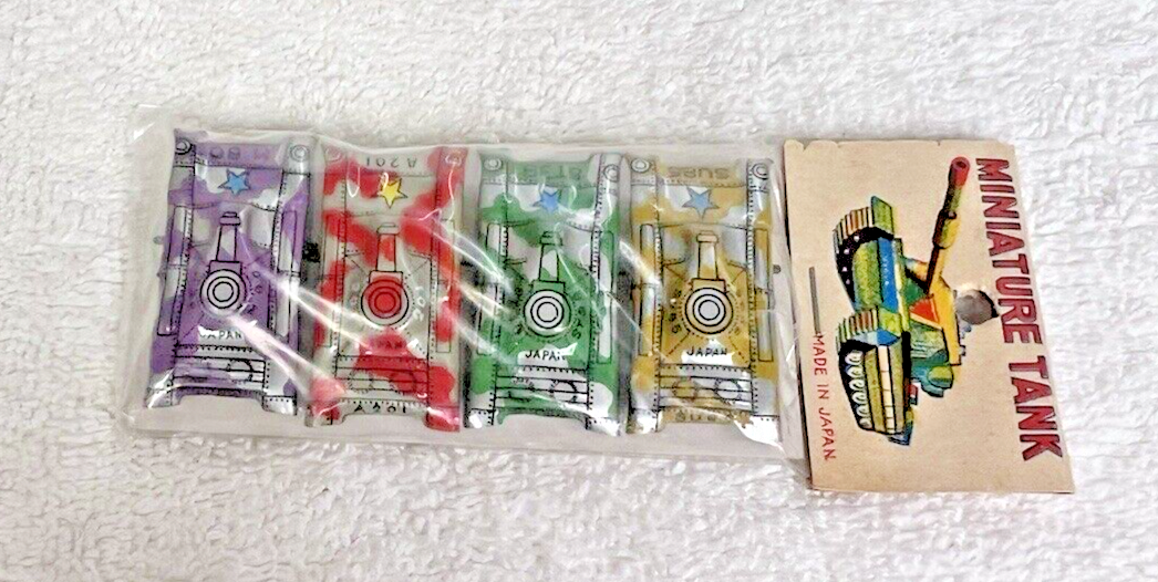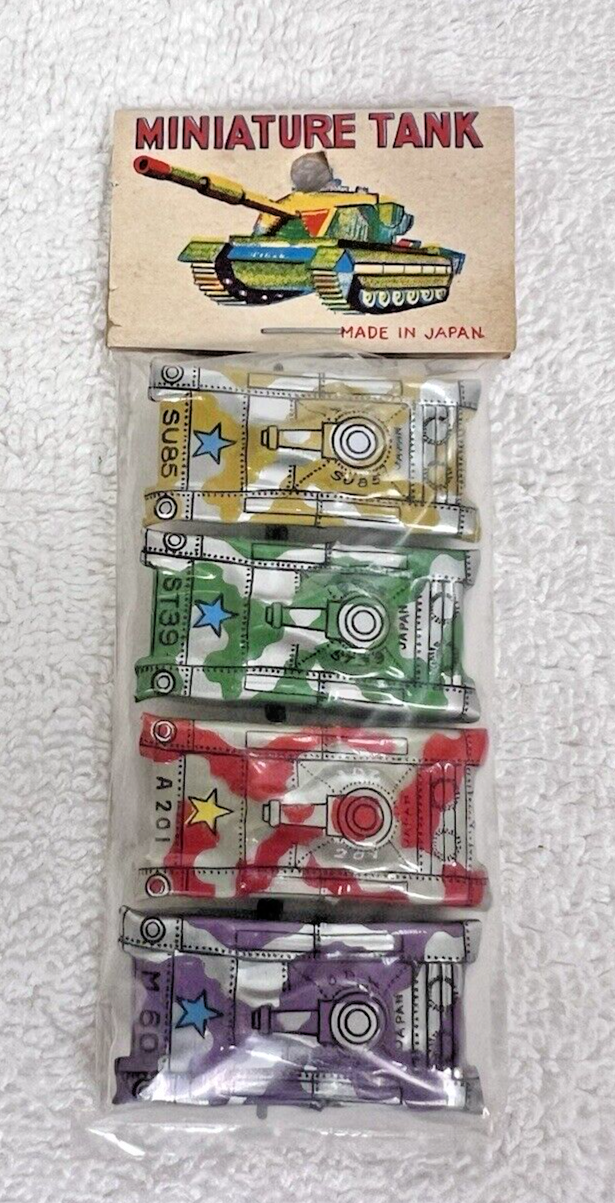 MIP Miniature Military Tanks Tin Litho 4 Pack Never Opened Japan 1 3/8"