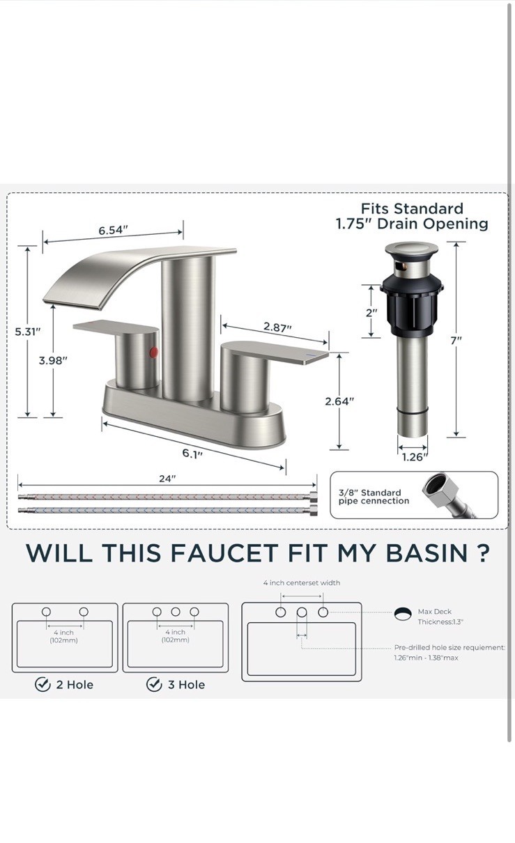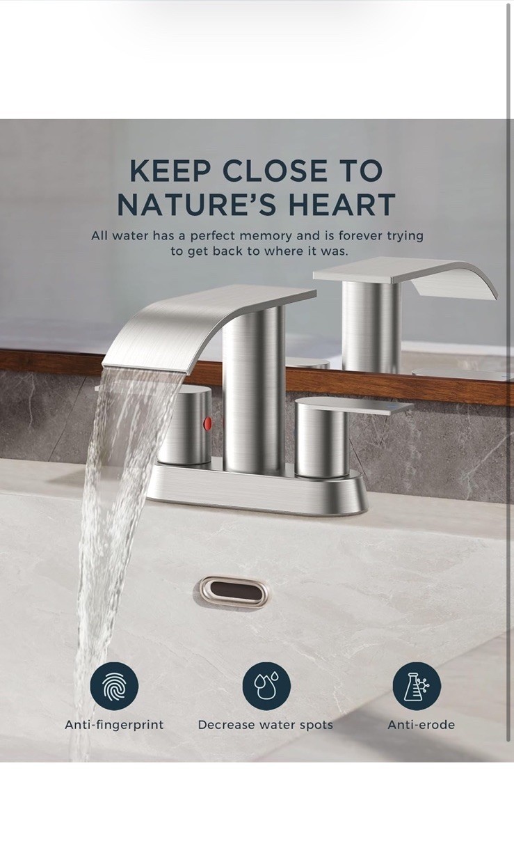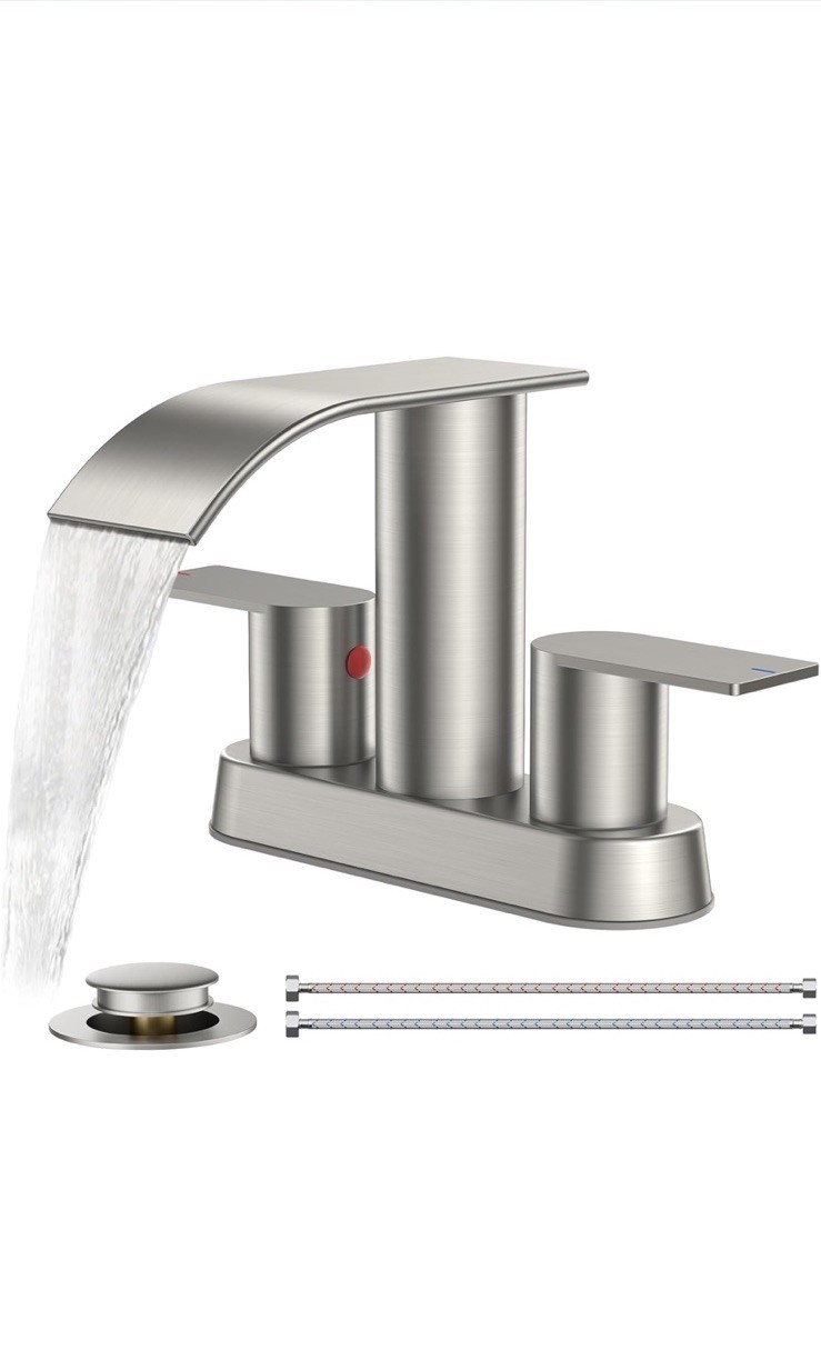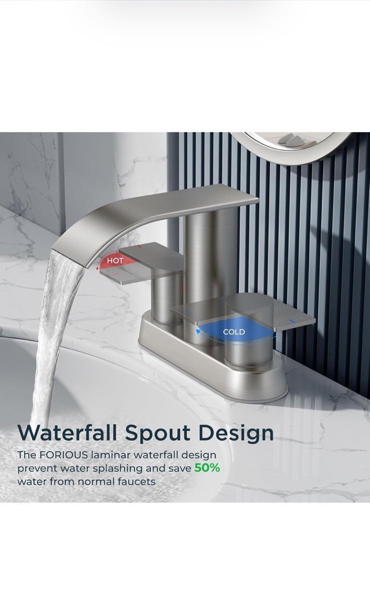 The Bathroom Sink Faucet by Forious is a modern, stylish addition to any bathroom. With a brushed nickel finish and waterfall shape, this single handle faucet is both functional and aesthetically pleasing. Made of nickel, this low lead compliant faucet is easy to install with its deck mount design and includes a manufacturer warranty of 5 years. The lever handle makes it easy to operate, while the spot resistant feature ensures easy maintenance. Whether you are replacing an existing faucet or upgrading your bathroom fixtures, this faucet is a great choice for adding a touch of elegance to your space.