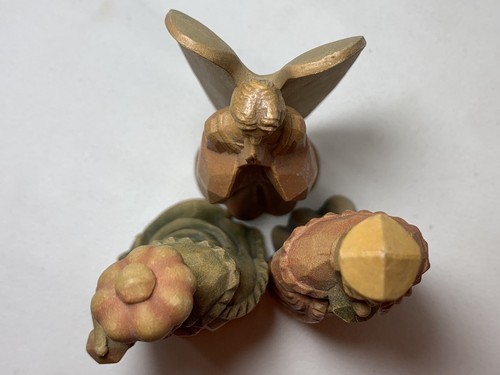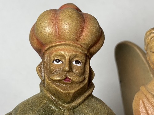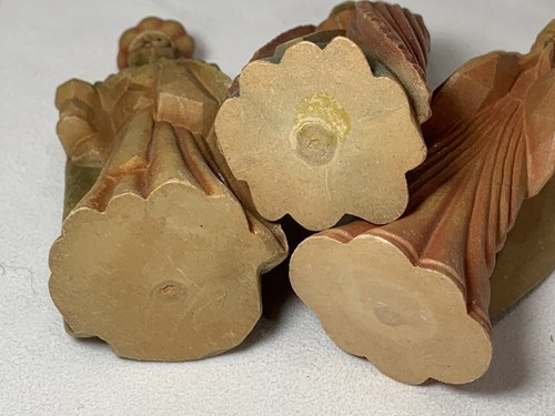 These look as if they came from the same set of nativity figures. All have that same look and feel as if they were made of wood, but I think they are a resin of sorts. They average around 4" (shortest King). Are very neat! No markings so no idea of age or maker.