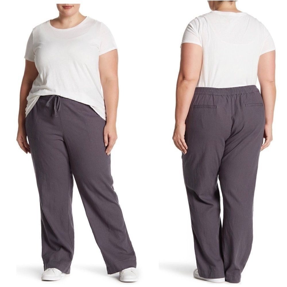 Caslon Solid Linen Blend Pants, Lightweight Adjustable Waist, COMFY, 1X, Gray,