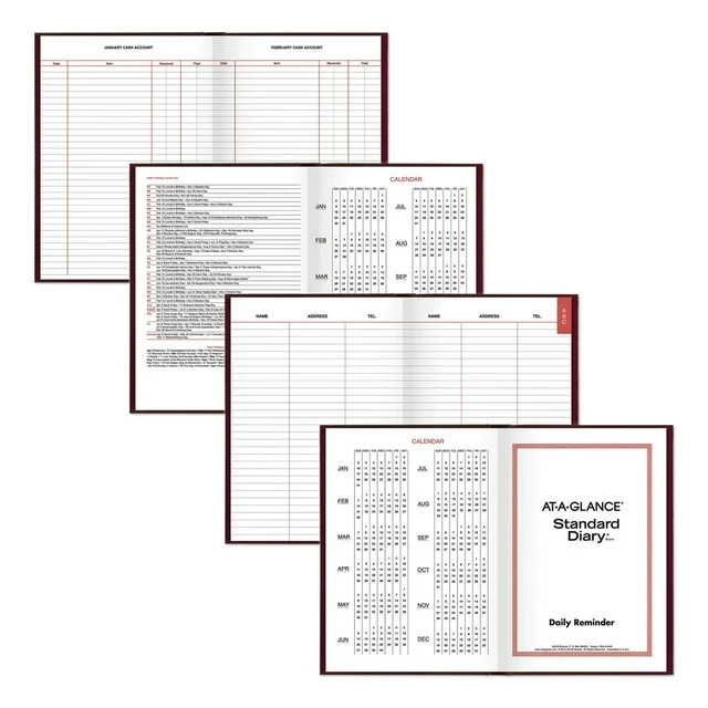 AT-A-GLANCE Standard Diary 2026 Daily Reminder Red Medium 5 3/4" x 8 1/4" Daily Journals Diaries