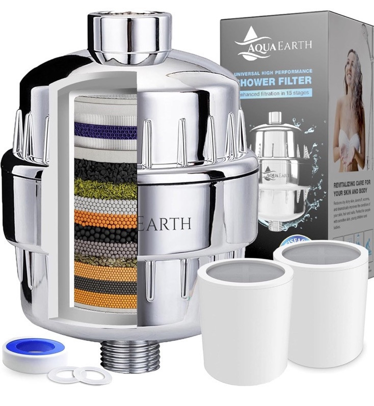 Aqua Earth 15 Stage Shower Filter with Vitamin C Shower Filters for Hard Water U