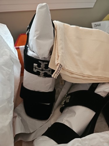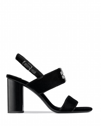Tory Burch Eleanor Pave Heel Sandal in Black Velvet Leather $428, Sz 10, NIB