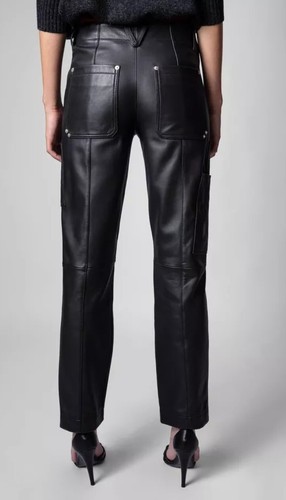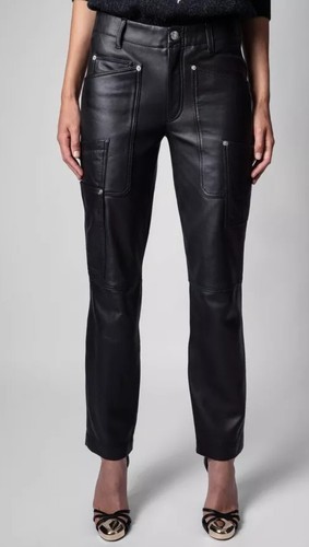 Zadig & Voltaire Player Leather Pants Trousers Pockets Black $998, Sz 36 , S -US