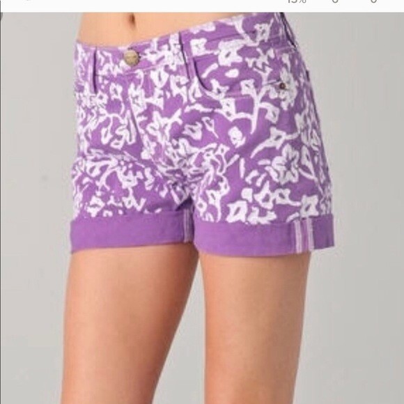 Diane von Furstenberg & Current Elliott Lilac Printed Five Pocket Shorts Sz 30