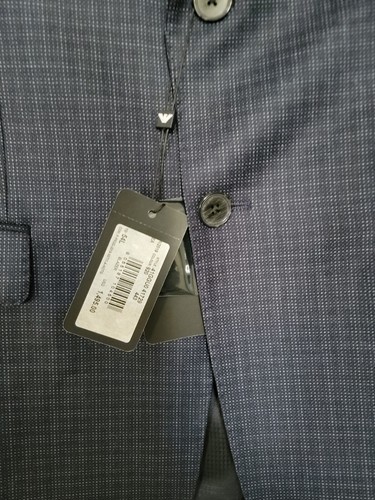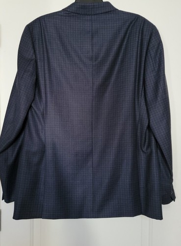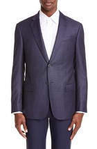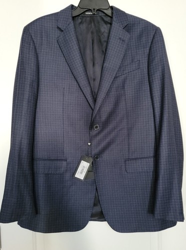 Emporio Armani Trim Fit Dot Wool Sport Coat Blue Plaid $1495, Sz 54 L