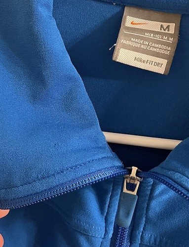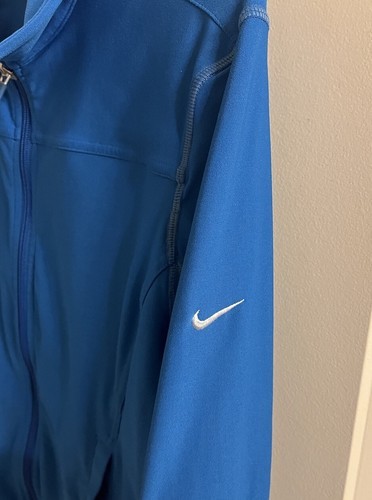 Stay cool and comfortable during your runs with this Nike Dri-FIT women's running jacket in a beautiful blue color. This jacket is perfect for women who love to stay active and look great doing it. Very good condition-a little pilling as shown in photos-and comes from a smoke free home! Please let me know if you have any questions!