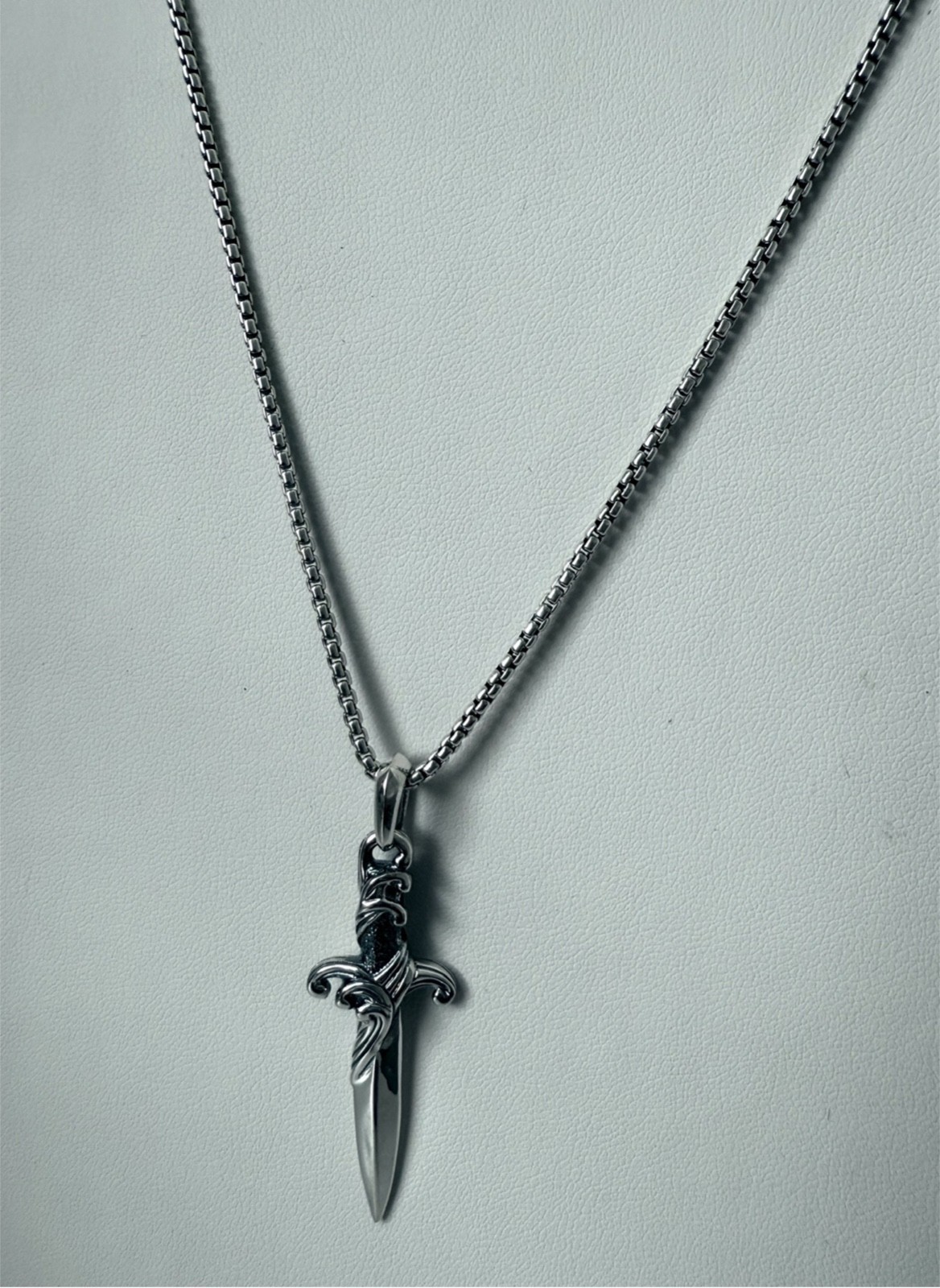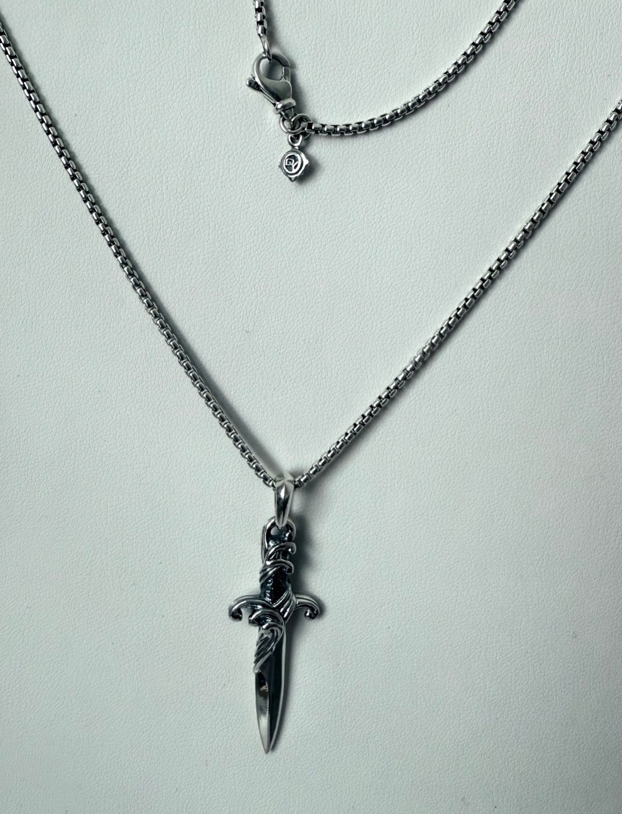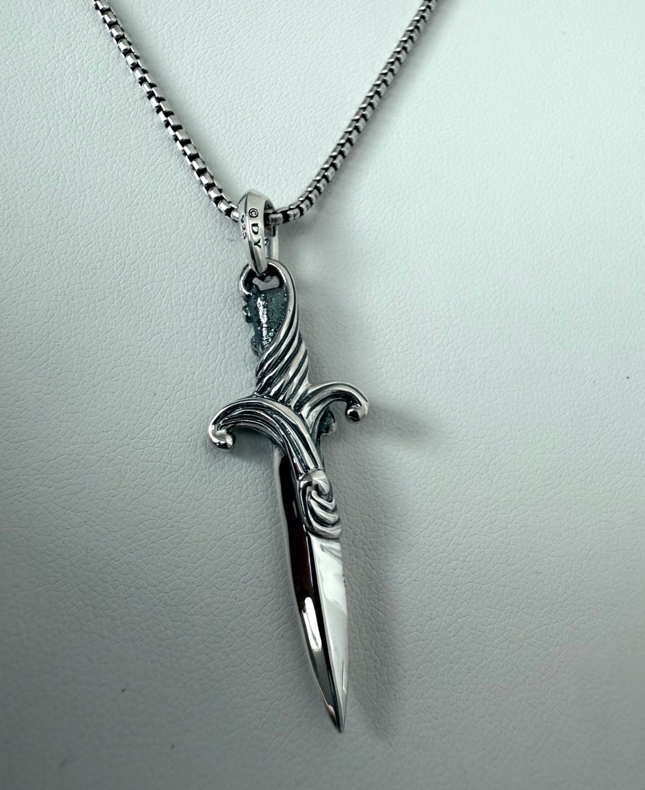 David Yurman 925 Sterling Silver Plain Dagger Pendant Amulet & Box Chain 24"inch