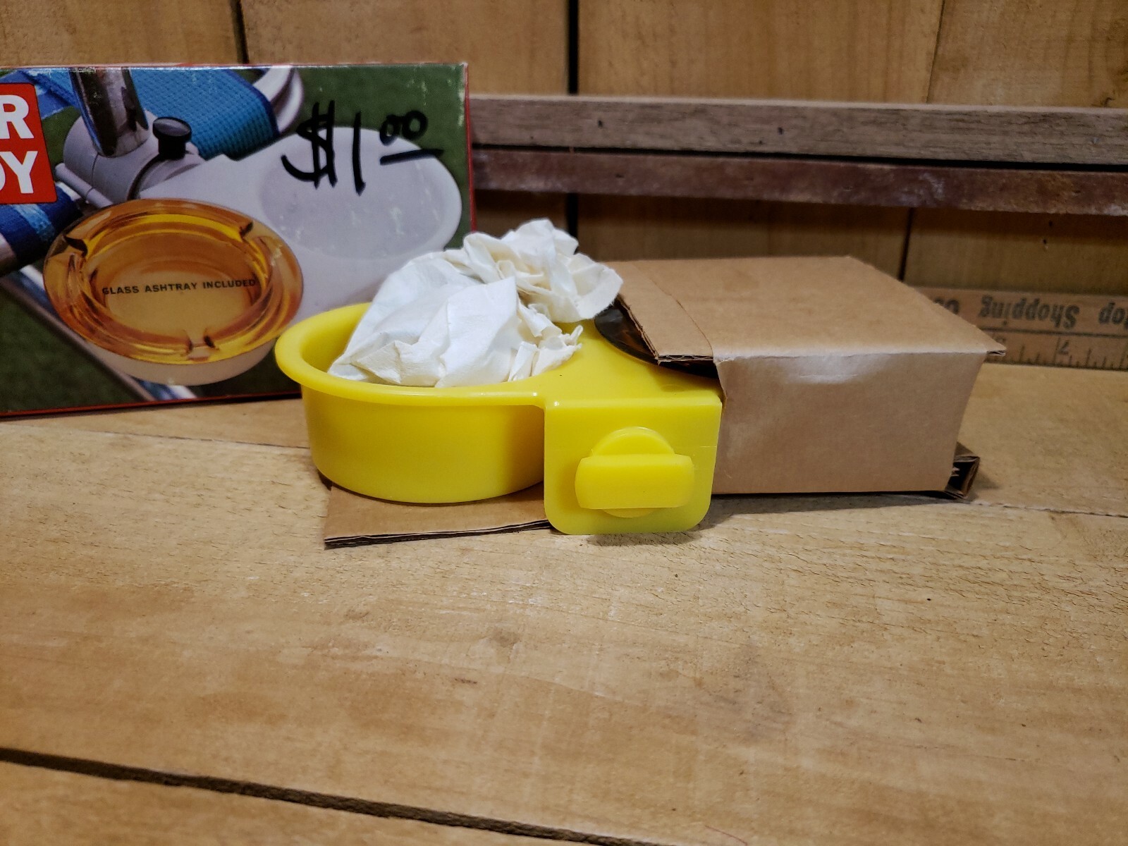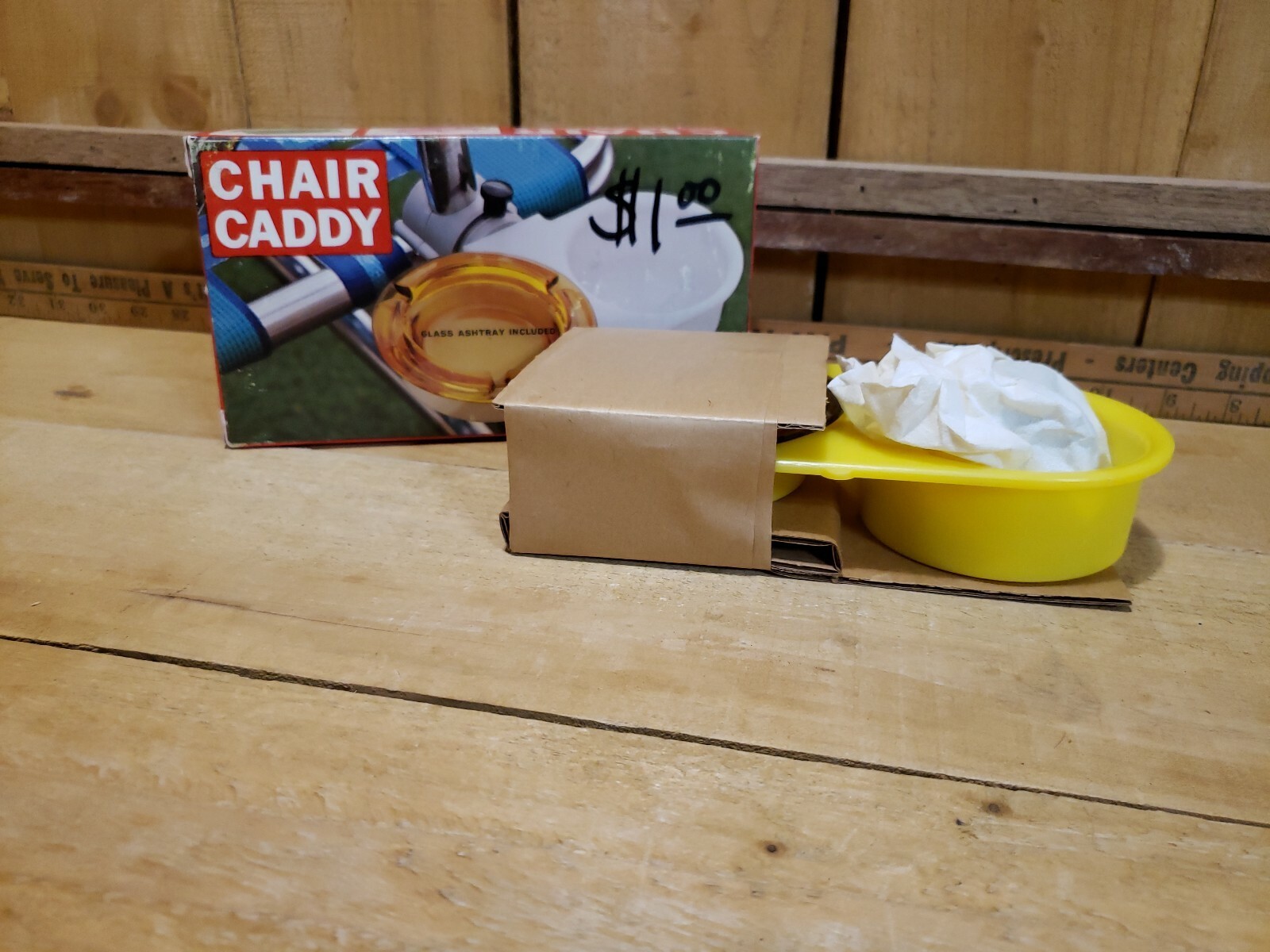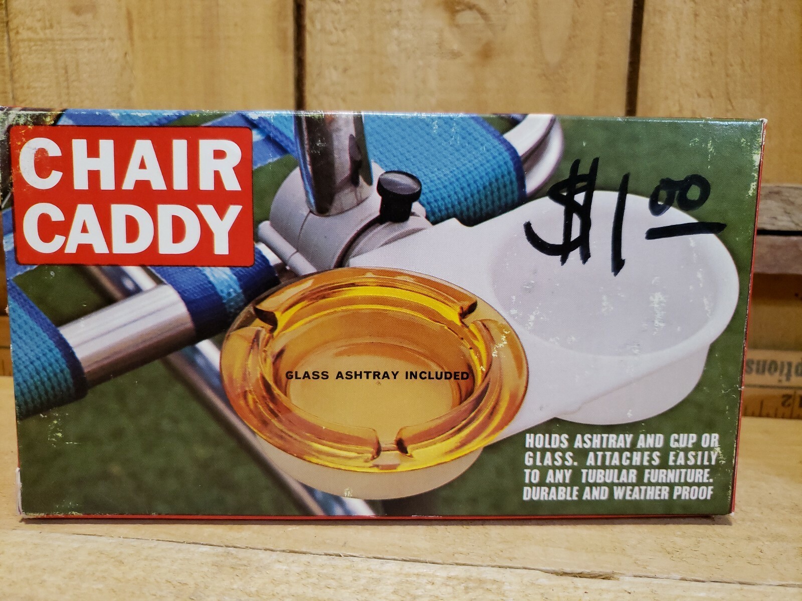 Vintage Chair Caddy with Yellow Glass Ashtray for Your Patio Chair Chaise Lounge