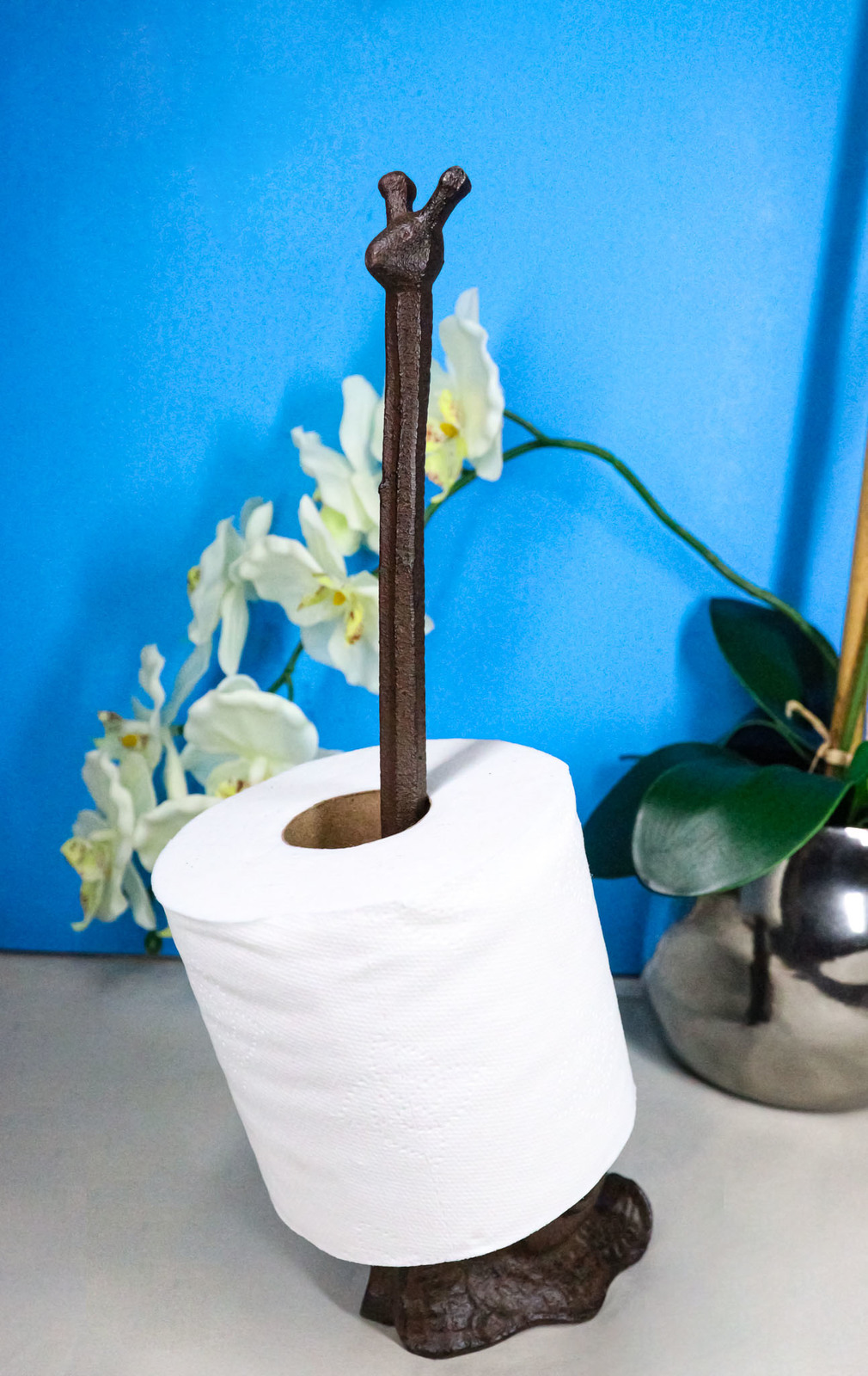 ? Add a whimsical marine touch to your home with this Cast Iron Slug Snail Toilet Paper Holder. Designed with a long neck to conveniently hold rolls, this sturdy cast iron piece doubles as a floor toilet paper holder or decorative accent. Its rustic finish and charming ocean-inspired snail design make it a perfect fit for coastal bathrooms, farmhouse decor, or nautical-themed spaces.