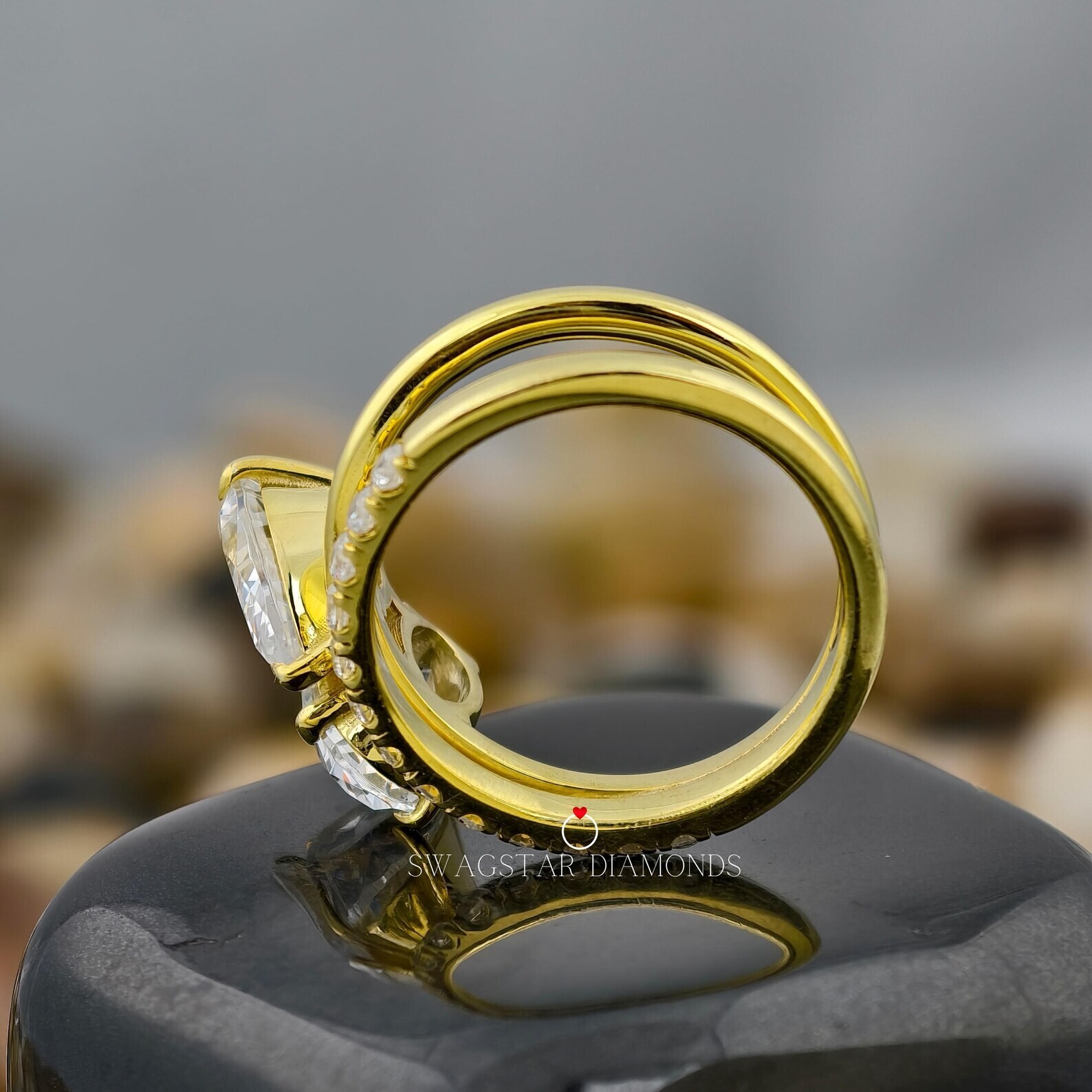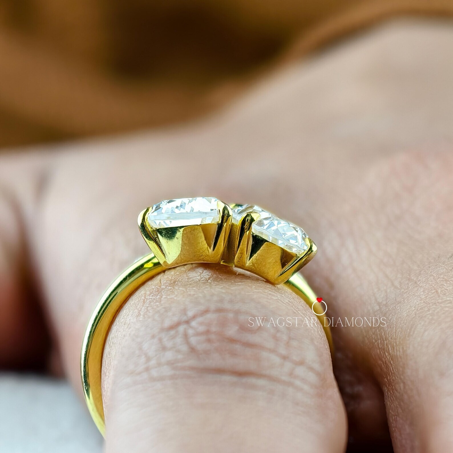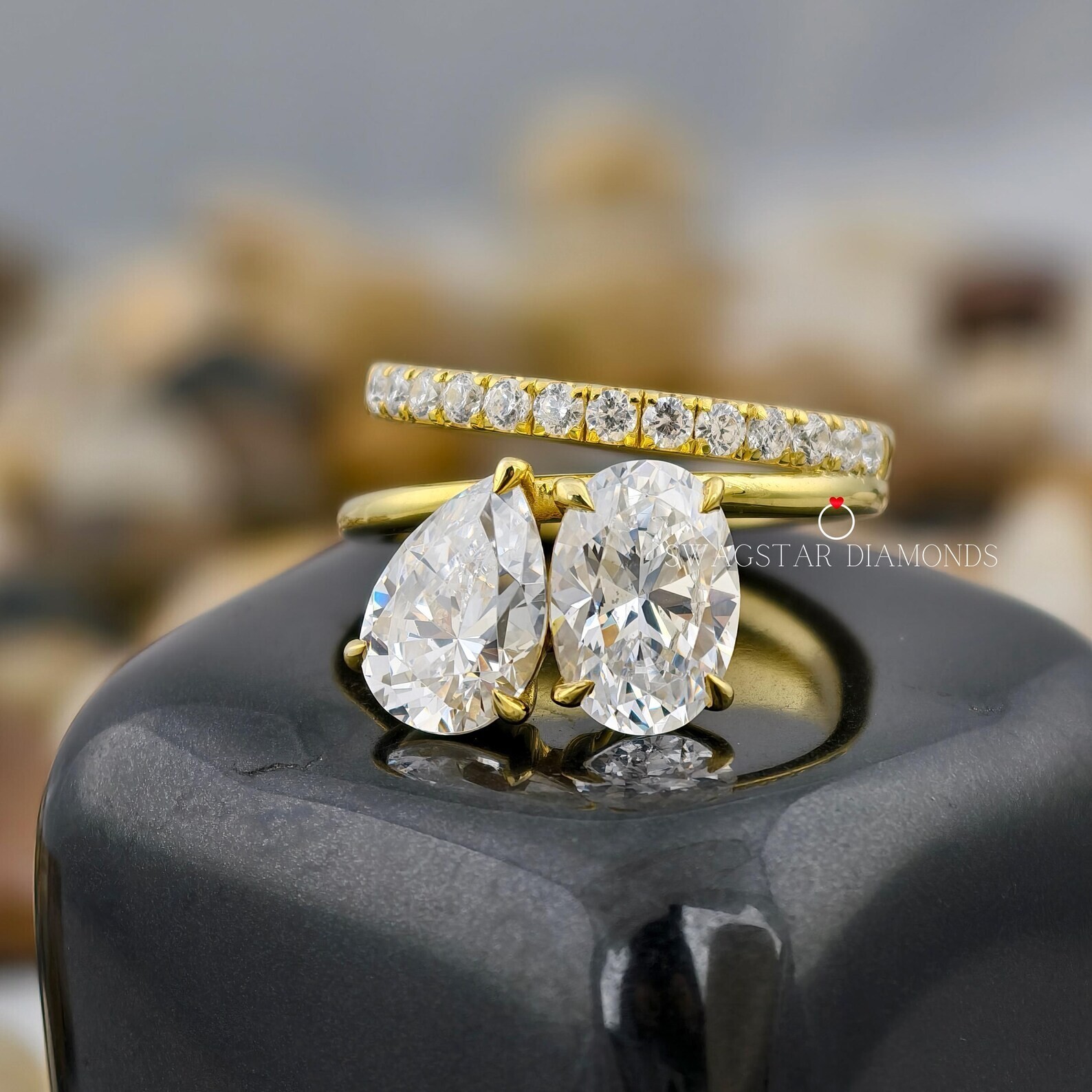 Pear And Oval Cut Engagement Ring Lab Grown Diamond Ring, 2+2 CT Diamond Ring,