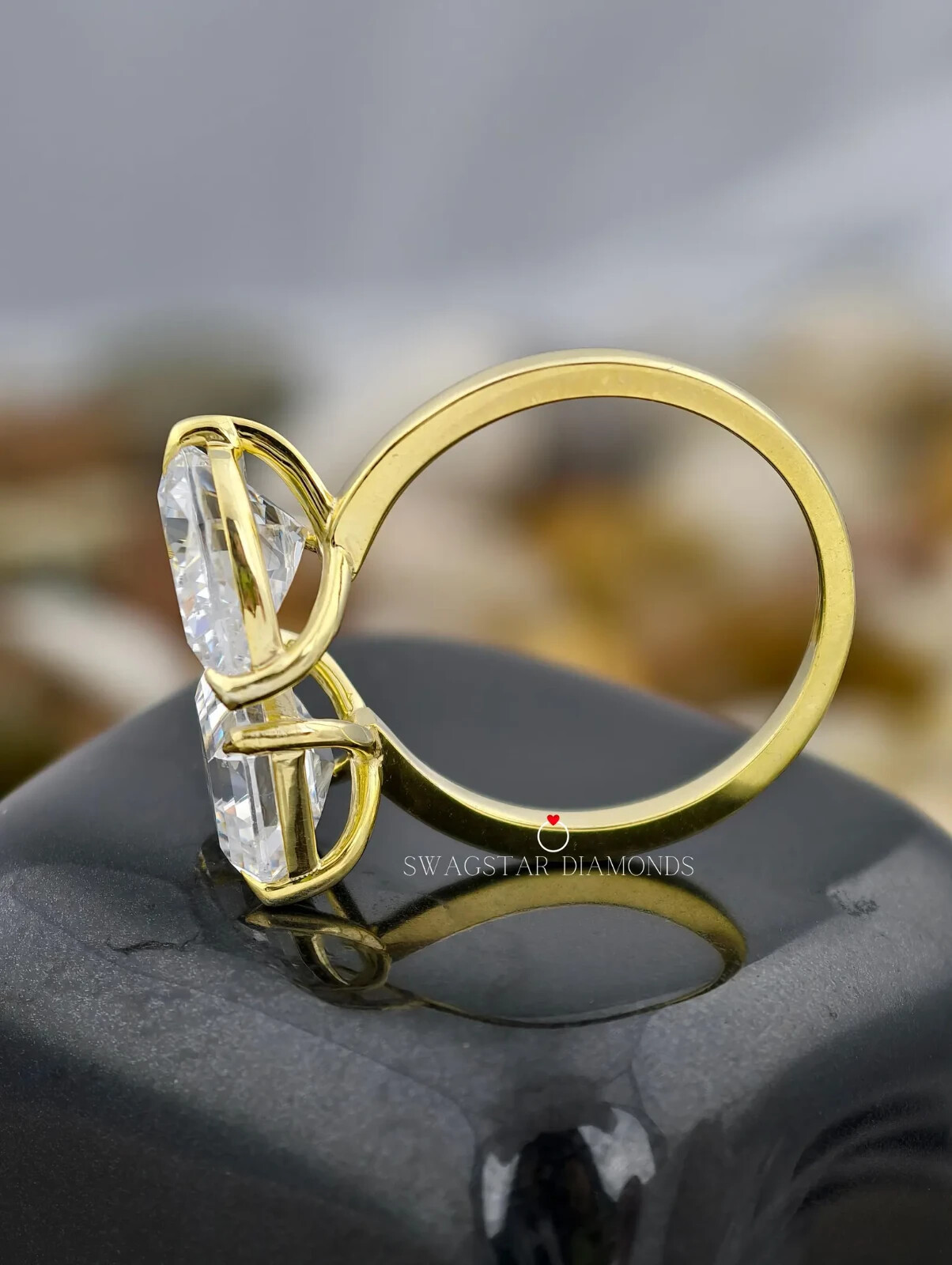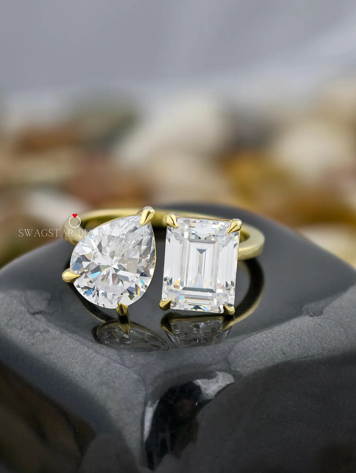 Pear And Emerald Cut Engagement Ring Lab Grown Diamond, 4.00 CT Diamond Ring,