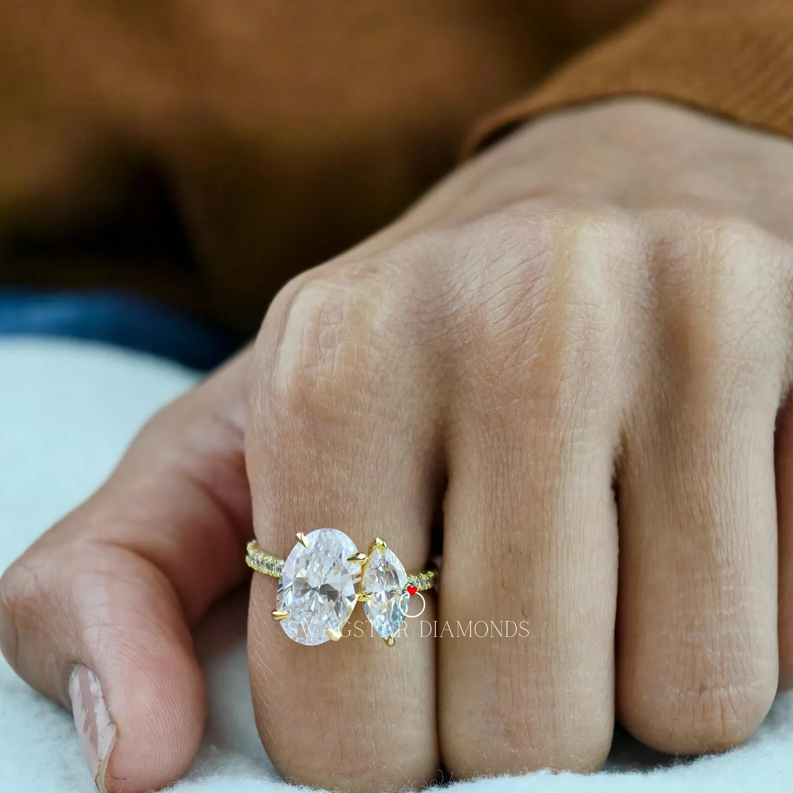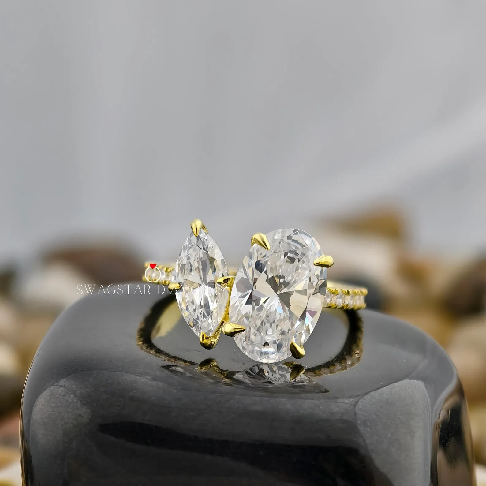 Oval And Marquise Cut Engagement Ring Lab Grown Diamond, 3.25 CT Diamond Ring,