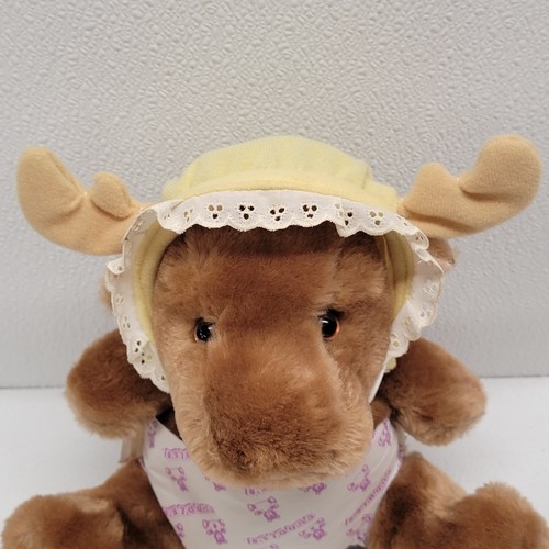 Vintage 1984 Dakin Arctic Circle Baby Moose Plush Yellow Bonnet Diaper