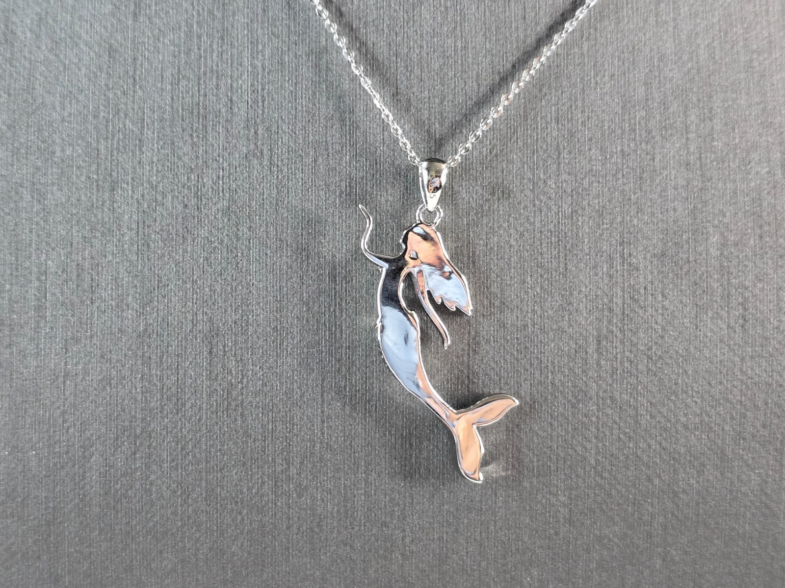 A WOMENS STERLING SILVER BLUE OPAL MERMAID PENDANT WITH NECKLACE. THE PENDANT AND NECKLACE WEIGHS 6.0g. THE PENDANT MEASURES 1 1/2" LONG BY 5/8" WIDE. THE NECKLACE MEASURES 18" LONG AND IS ADJUSTABLE TO 16". NOT SURE IF STONES ARE NATURAL OR MAN MADE. MAKES A GREAT GIFT FOR THAT SOMEONE SPECIAL. ANY QUESTIONS, PLEASE ASK. BE SURE TO CHECK OUT OUR OTHER ITEMS FOR SALE.