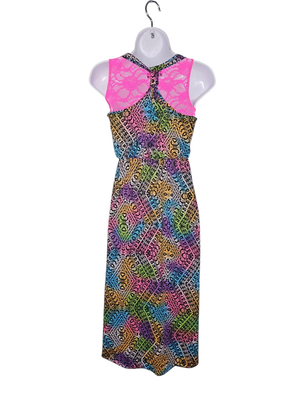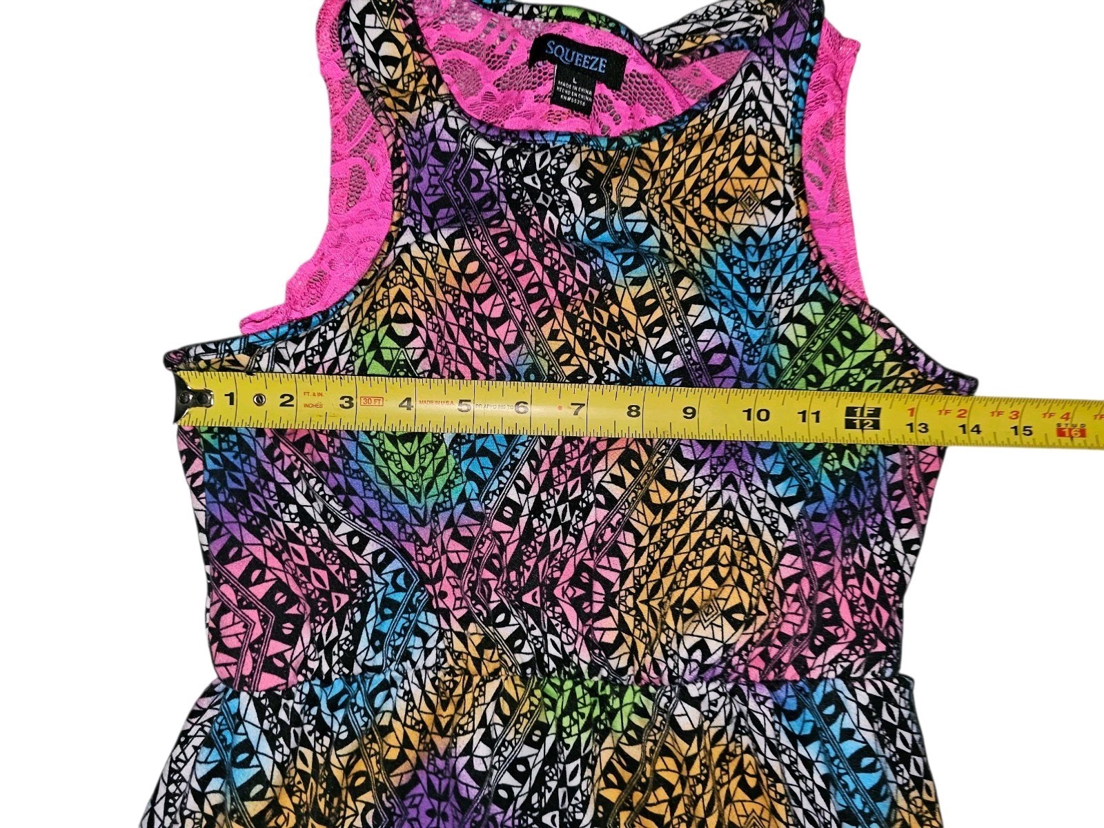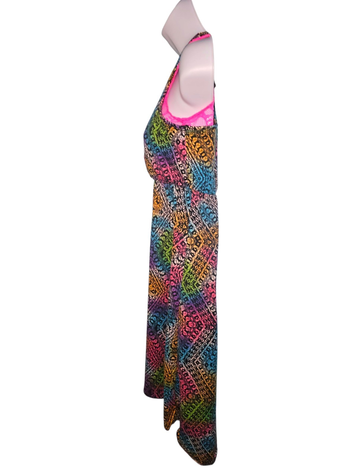 Squeeze Multicolored Festive Elastic Waist Lace Sleeveless Maxi Dress sz L