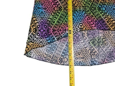 The Squeeze Multicolored Festive Elastic Waist Lace Sleeveless Maxi Dress in size L is a vibrant and stylish option for various occasions. With a geometric pattern and ruffle accents, this dress features a scoop neckline and a pullover closure for easy wear. Made from a blend of spandex and viscose with a rayon fabric type, this long dress is perfect for summer, fall, and spring seasons. The colorful design and boho theme make it a standout choice for travel, parties, or casual outings. Machine washable for easy care, this dress from Squeeze is sure to make a statement.