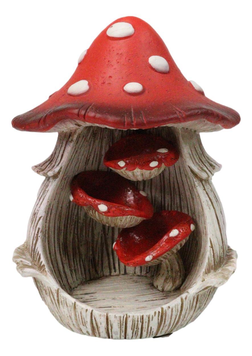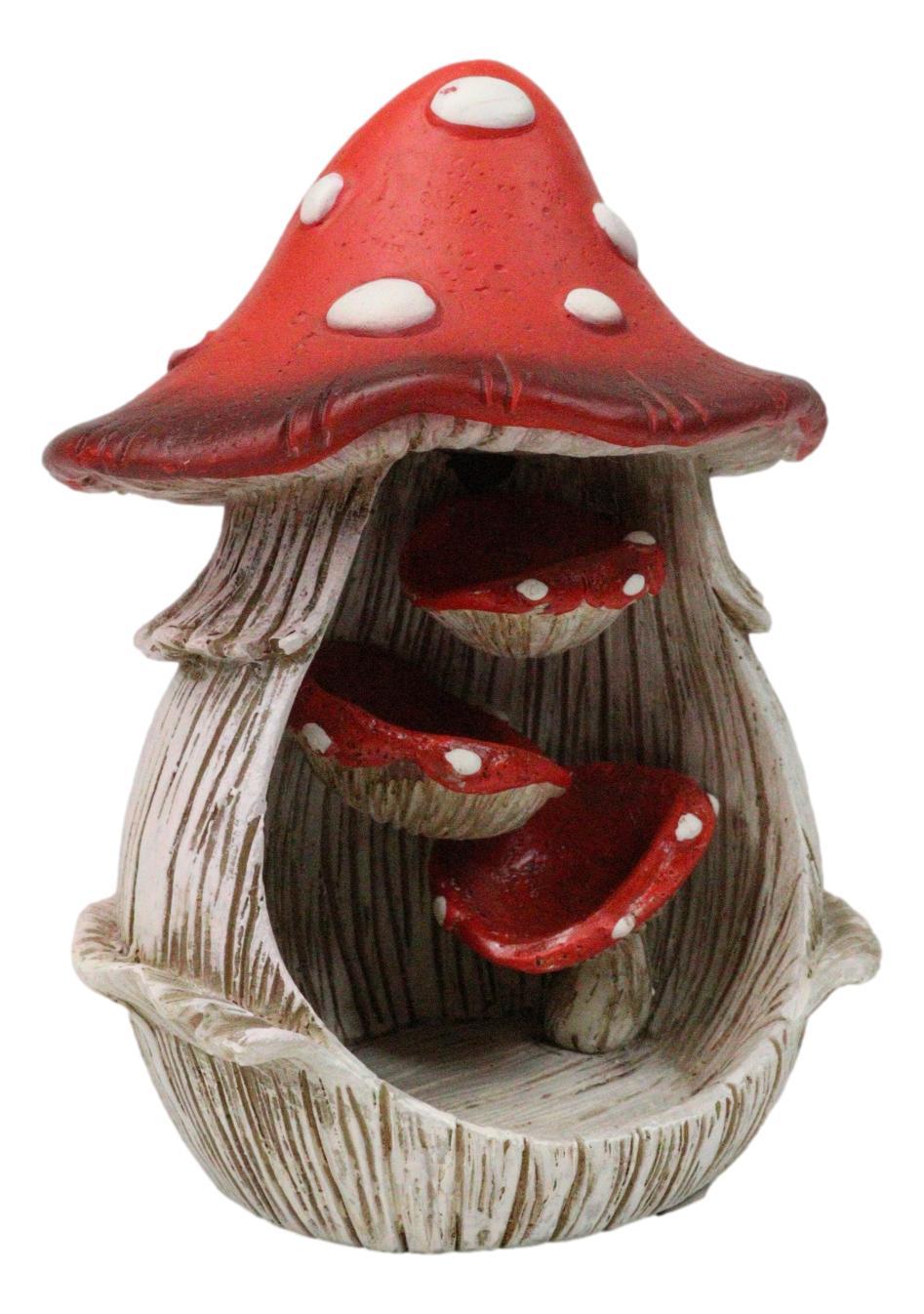 Fairy Garden Red Spotted Toadstool Mushroom Cottage Backflow Incense Burner