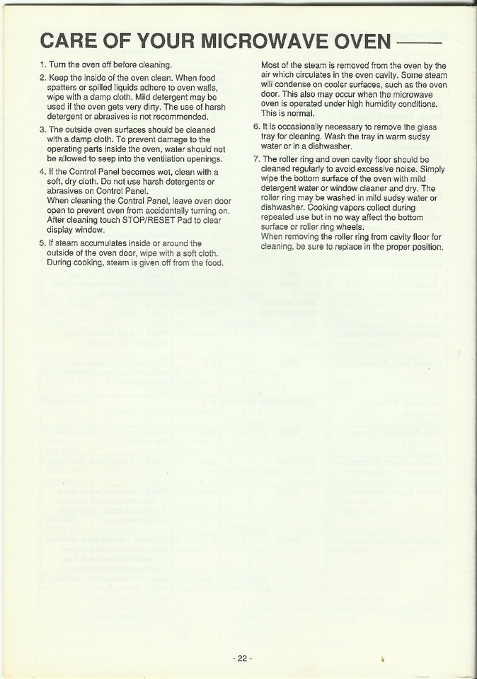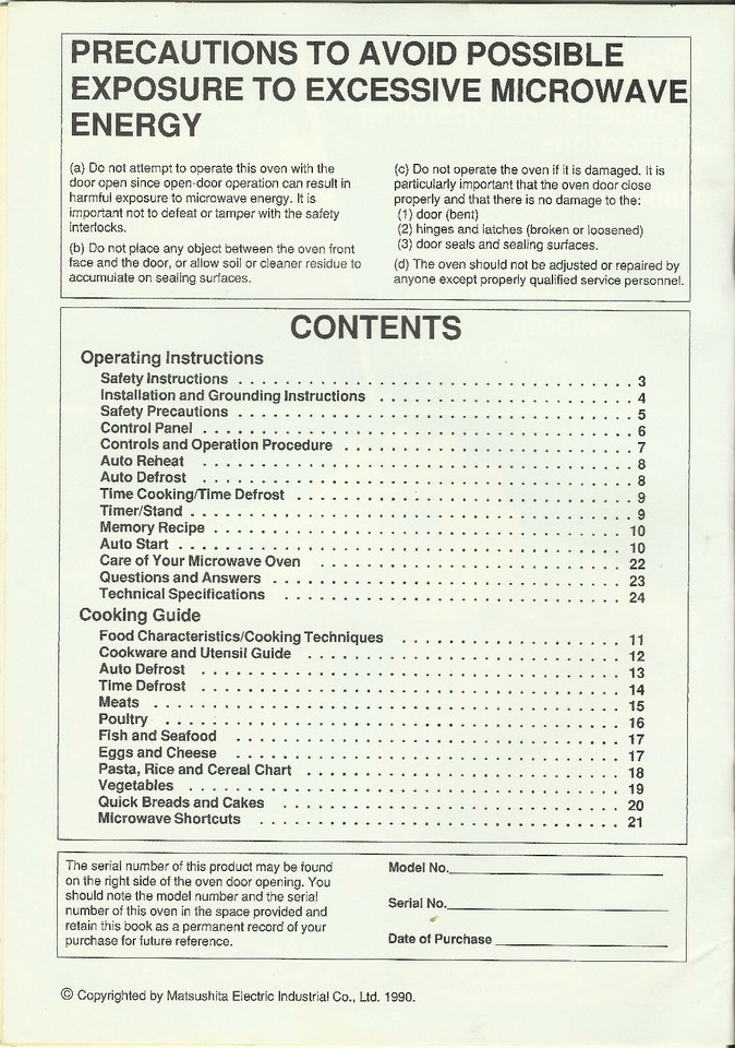 Printed Cookbook and Operating Instructions Panasonic Microwave Oven NN series