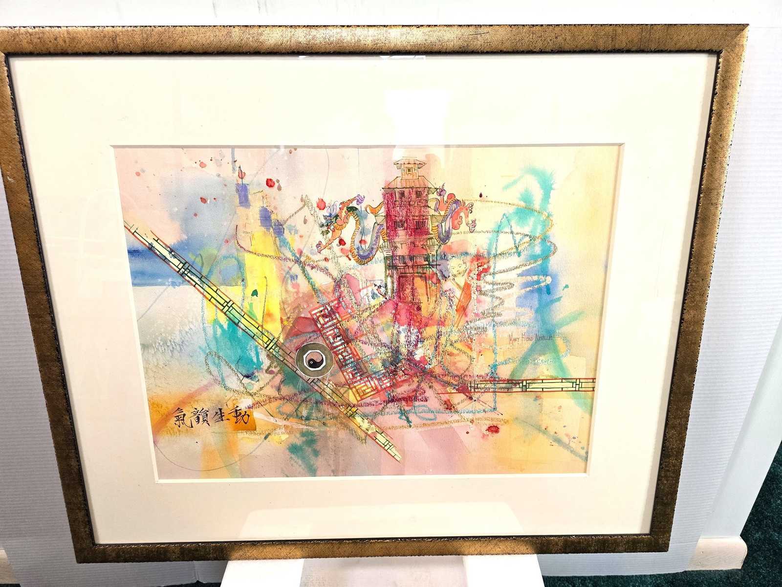 Asian Motif Abstract Painting Original Signed by Artist Framed 27" H x 33" W ... 100% original, one-of-a-kind hand painted art. ** Note : Fine art has returned an average of 7.5% gains annually over the last 40 years, and the art collectibles market as a whole has averaged 5% annual returns (CNBC Report 2021).