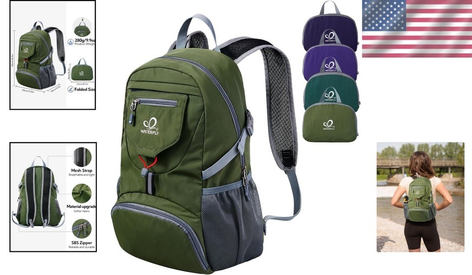 Minimalist 20L Lightweight Folding Backpack for Travel & Camping - Green