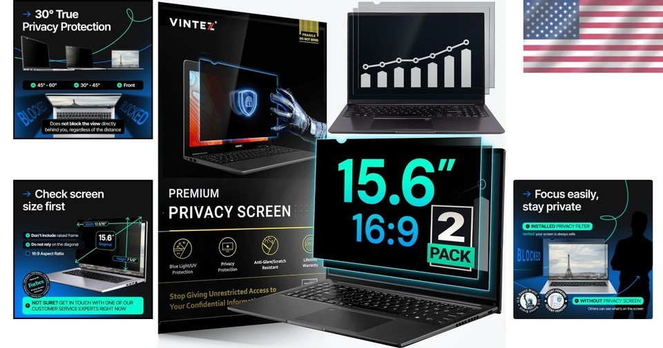 Vintez 15.6” Diagonal Privacy Screen Filters - Secure and Eye-Friendly Solution