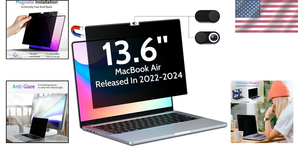 Ultimate Anti-Glare Magnetic Privacy Screen for MacBook Air 13.6" - Easy Install