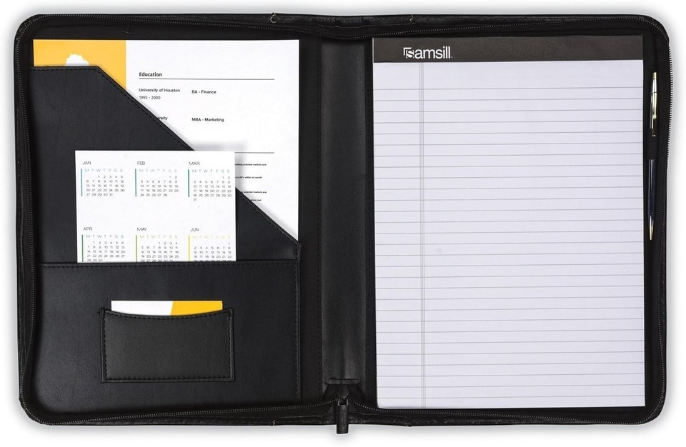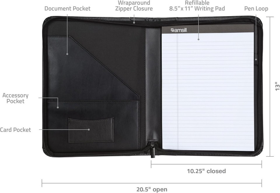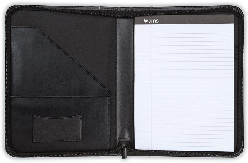 Comes with a letter-sized, 8.5 by 11-inch lined writing pad for quick note-taking.